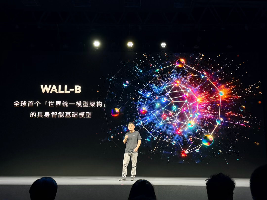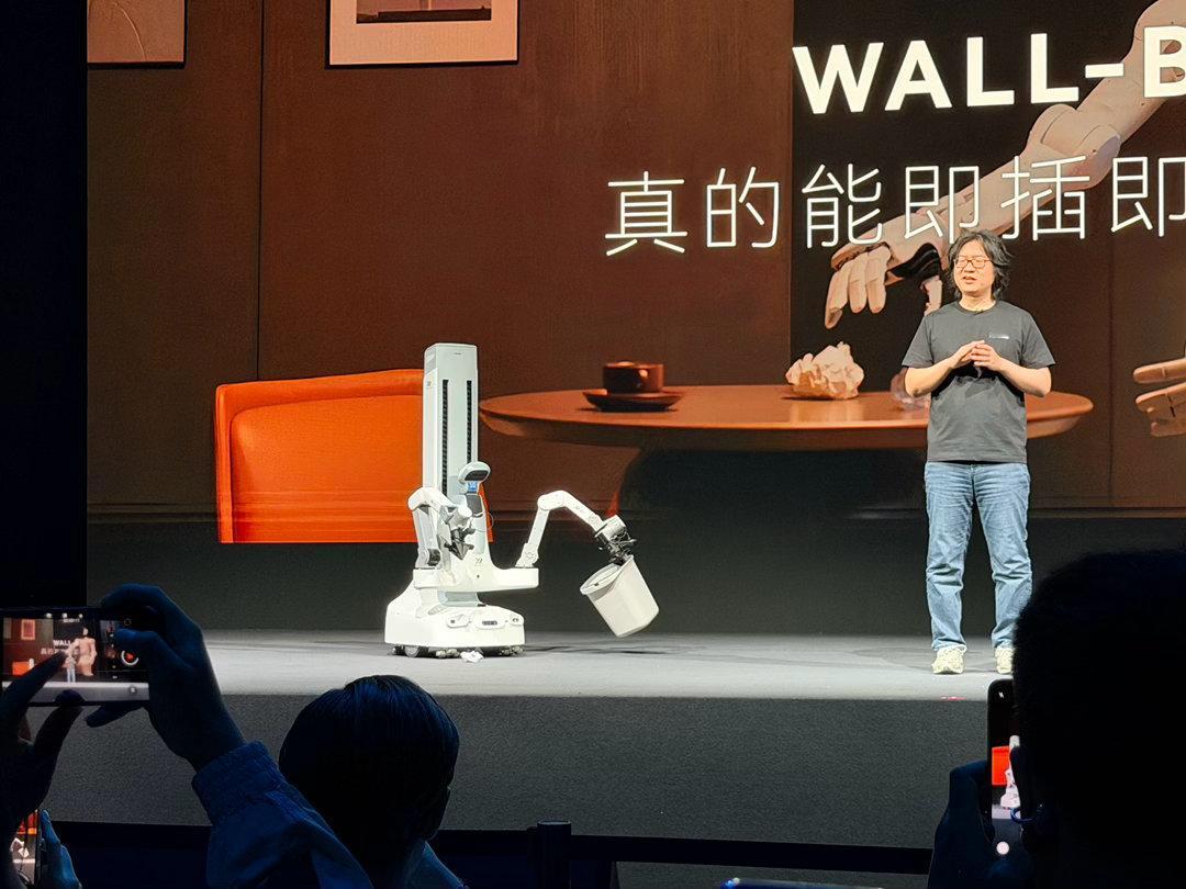 自变量机器人今天发布的 Wall-B模型,拥有原生本体感,不看自己全身也知道自己多高多宽手能伸多远。理解物理规律,知道盘子悬在桌边会掉、玻璃落地会碎,还会自我进化,失败后换个角度重来。