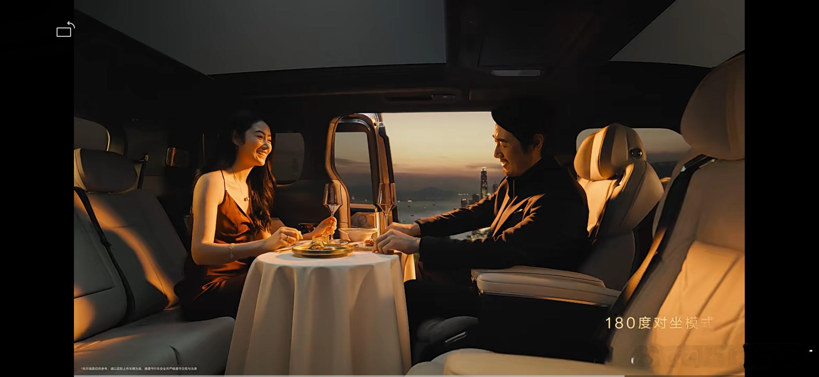 车内:第二排座椅可以45度迎宾 便利上车第二排座椅90度旋转 形成览景、钓鱼模式第二排座椅180度旋转 形成对坐模式第二排座椅有零重力、伊姆斯躺椅等第二排中间留有过道方便第三排进出第三排座椅电动四向调节第三排与一排语音通话