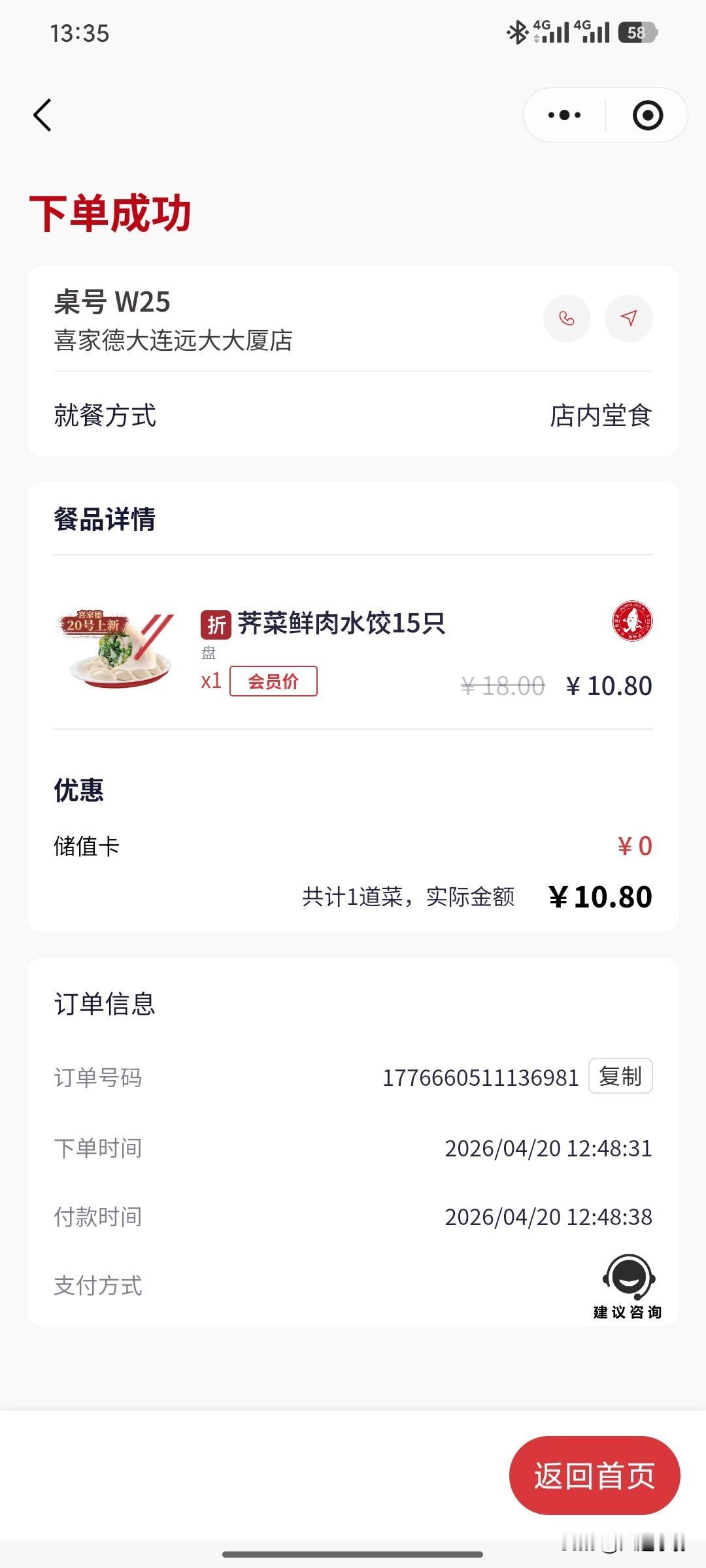 - 喜家德微信扫码点餐10.元8吃荠菜水饺,活动限时一周!