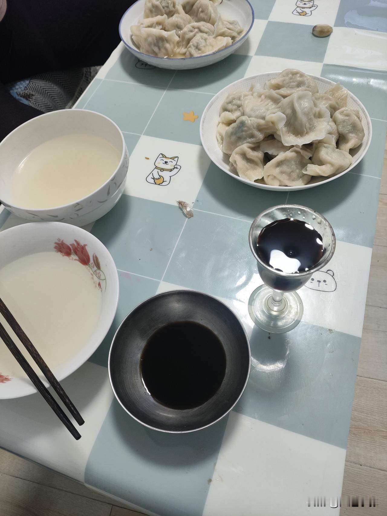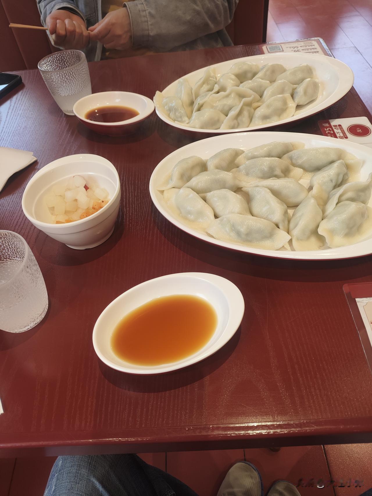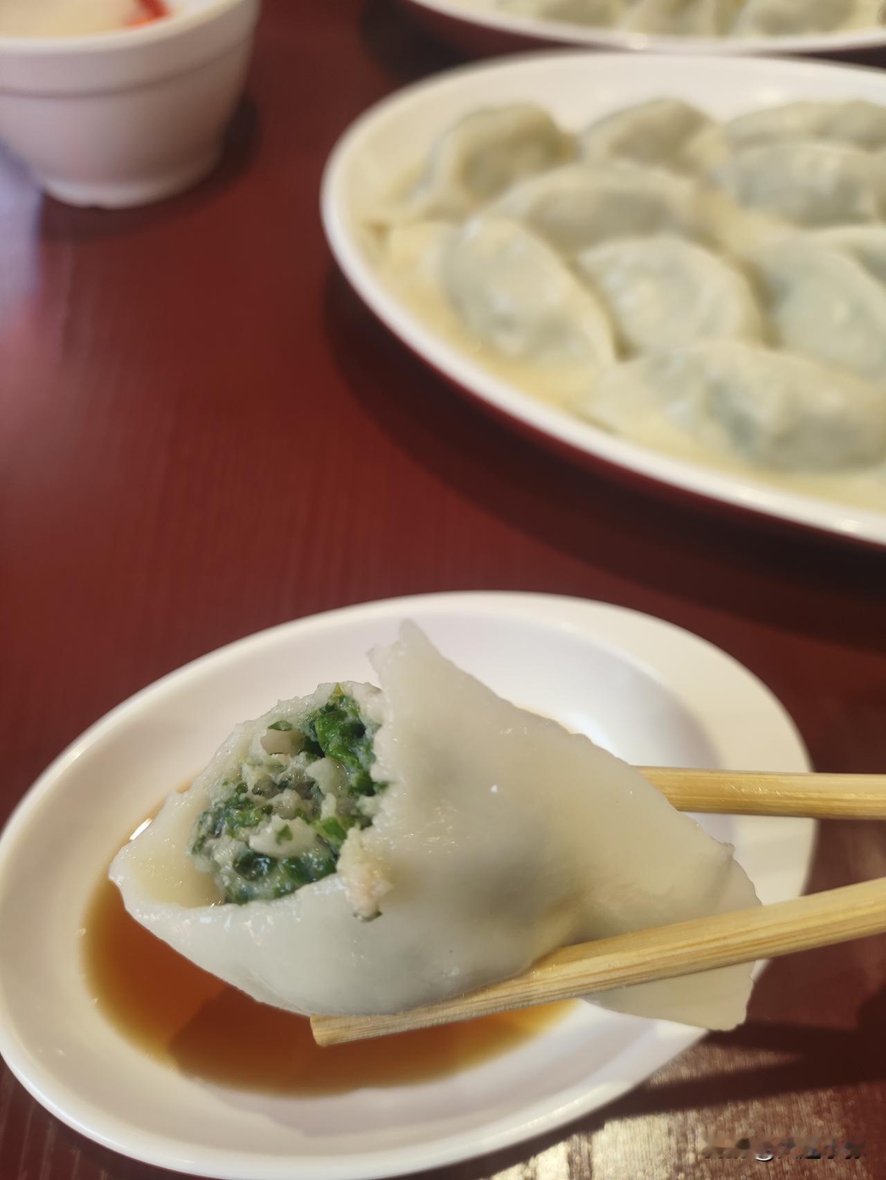 荠菜猪肉水饺真的鲜到掉眉毛!一口咬下去汤汁直接爆出来,蘸点醋再喝口免费的紫菜虾皮汤,绝了!就是荠菜馅的饺子个头有点小,我吃完胃里有点不舒服(个人肠胃问题,饺子本身没问题哈)。