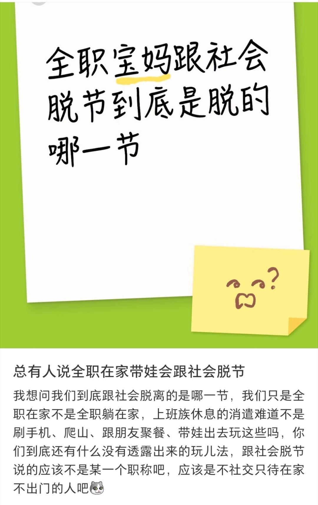 全职宝妈跟社会脱节到底脱的哪一节