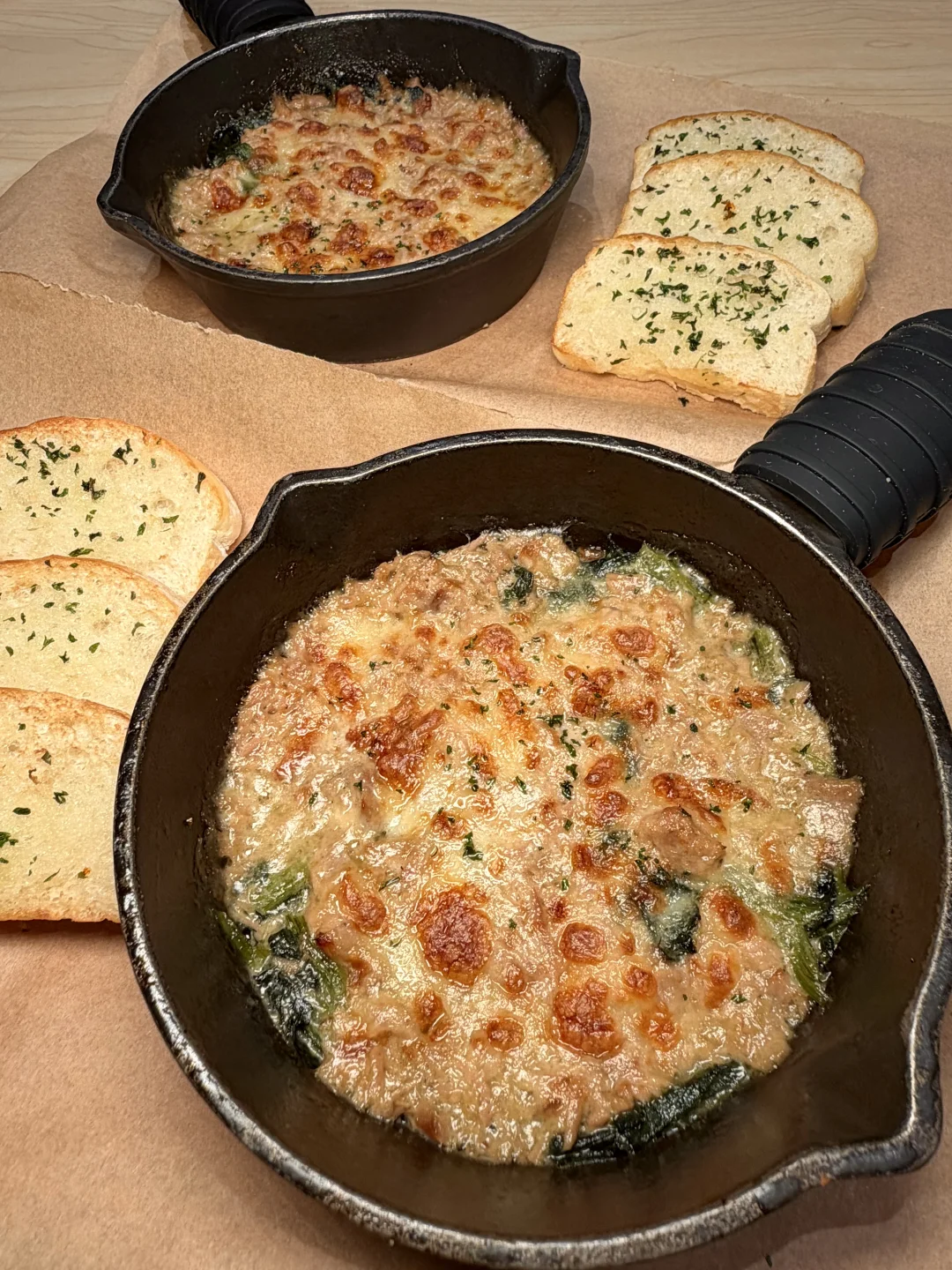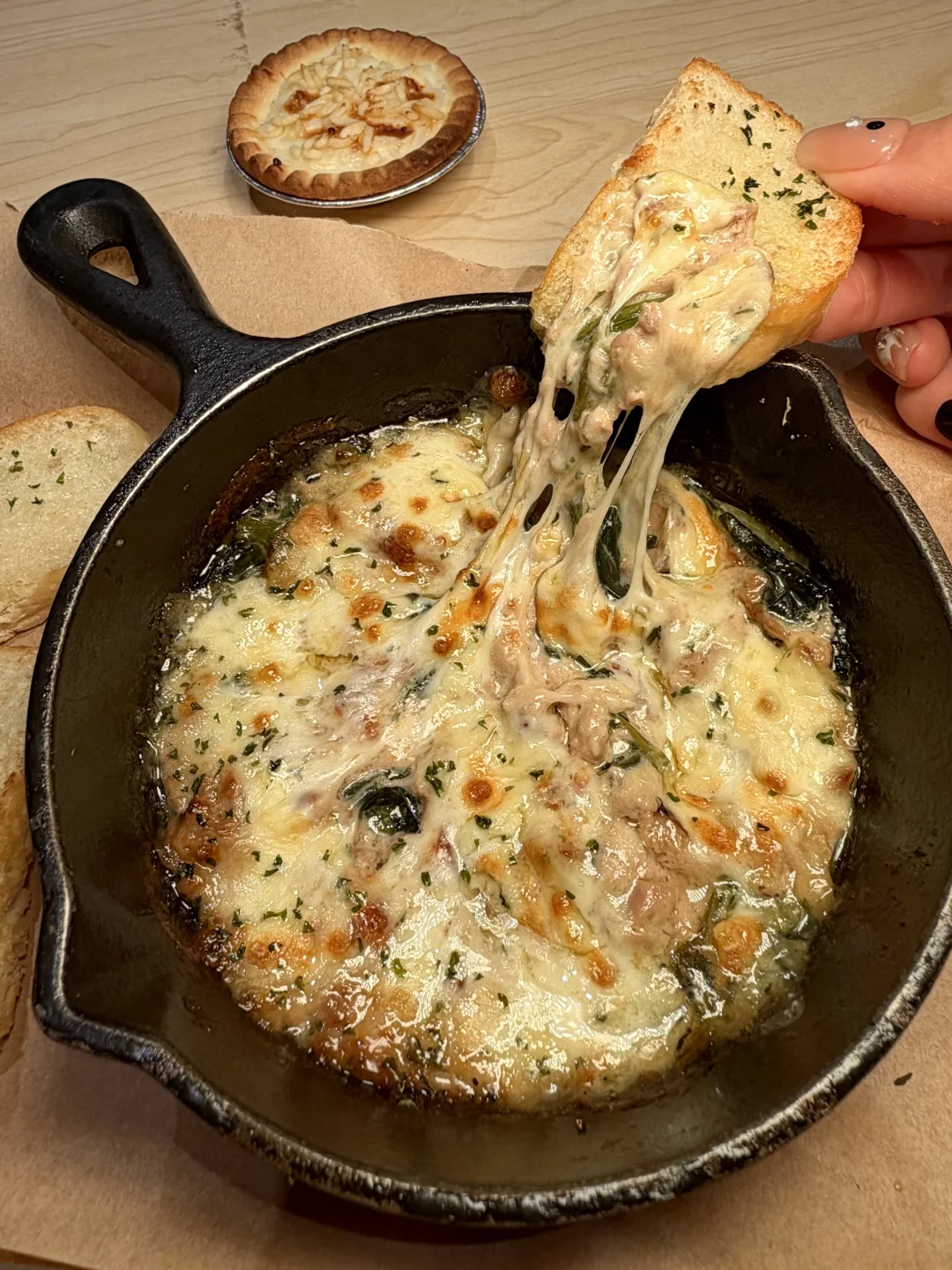 用面包片舀起绵密金枪鱼慕斯和汁水充盈的菠菜,刚好中和甜腻芝士🧀一口一块根本停不下来!!