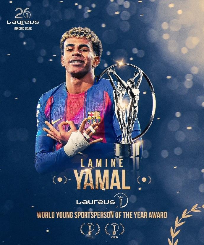 ★18岁的亚马尔获得劳伦斯2026年度最佳青年运动员奖,该奖项于今年首次设立。