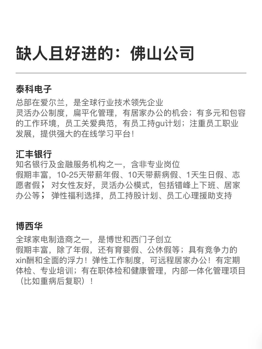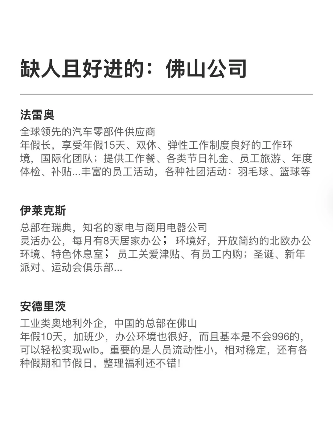 很多外企在佛山都设有分公司/办事处/地区岗位