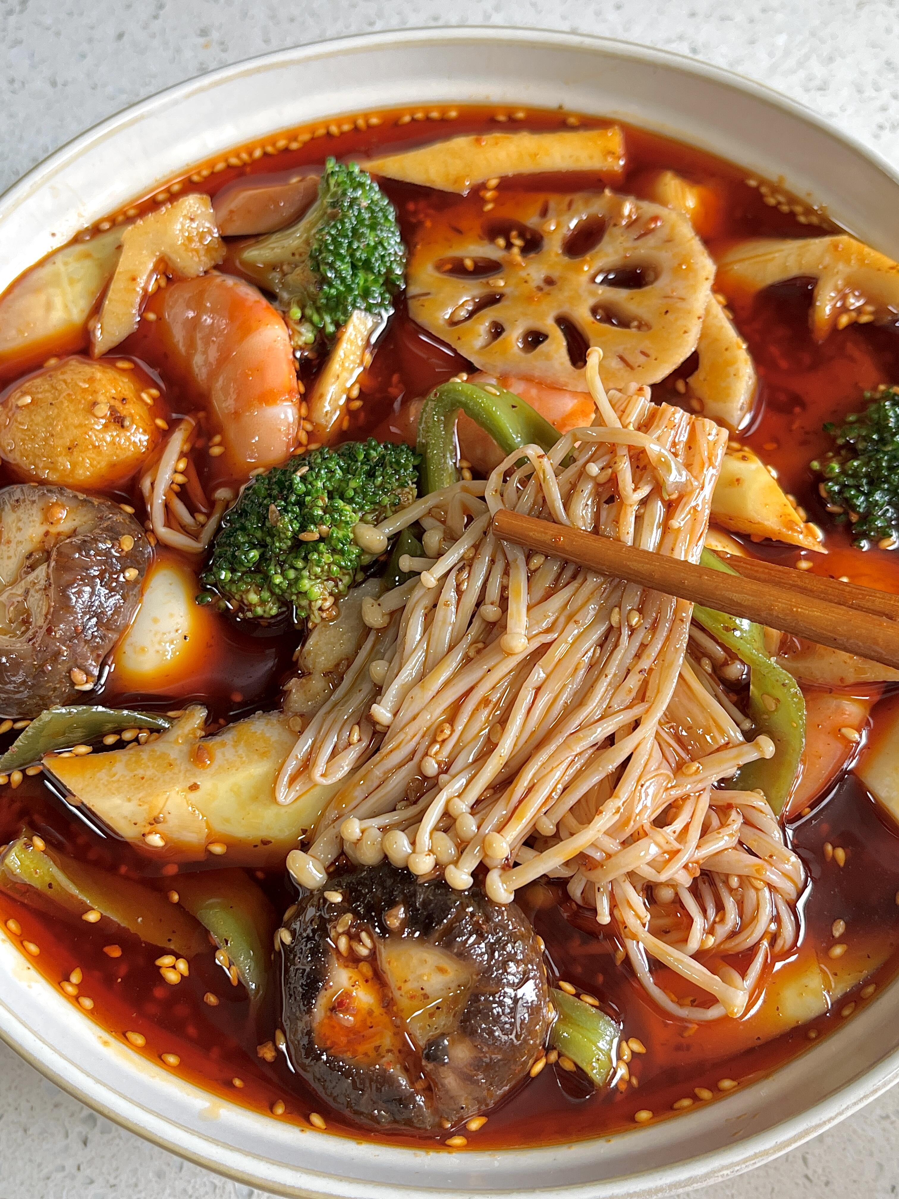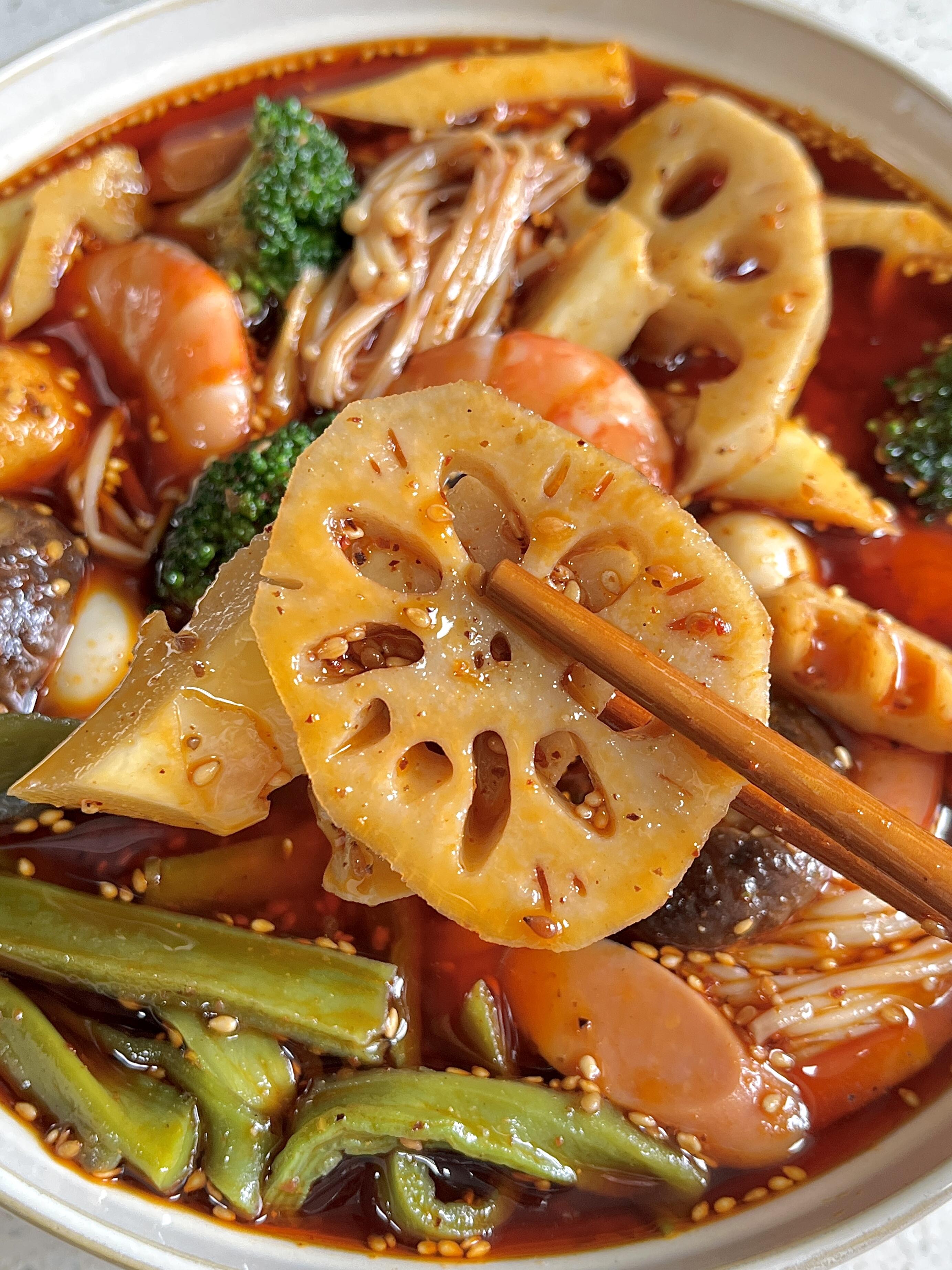 全程不用费太多功夫,香辣过瘾还不麻烦,泡好的配菜吸足了汤汁,一口一个停不下来,在家就能实现钵钵鸡自由,赶紧安排~