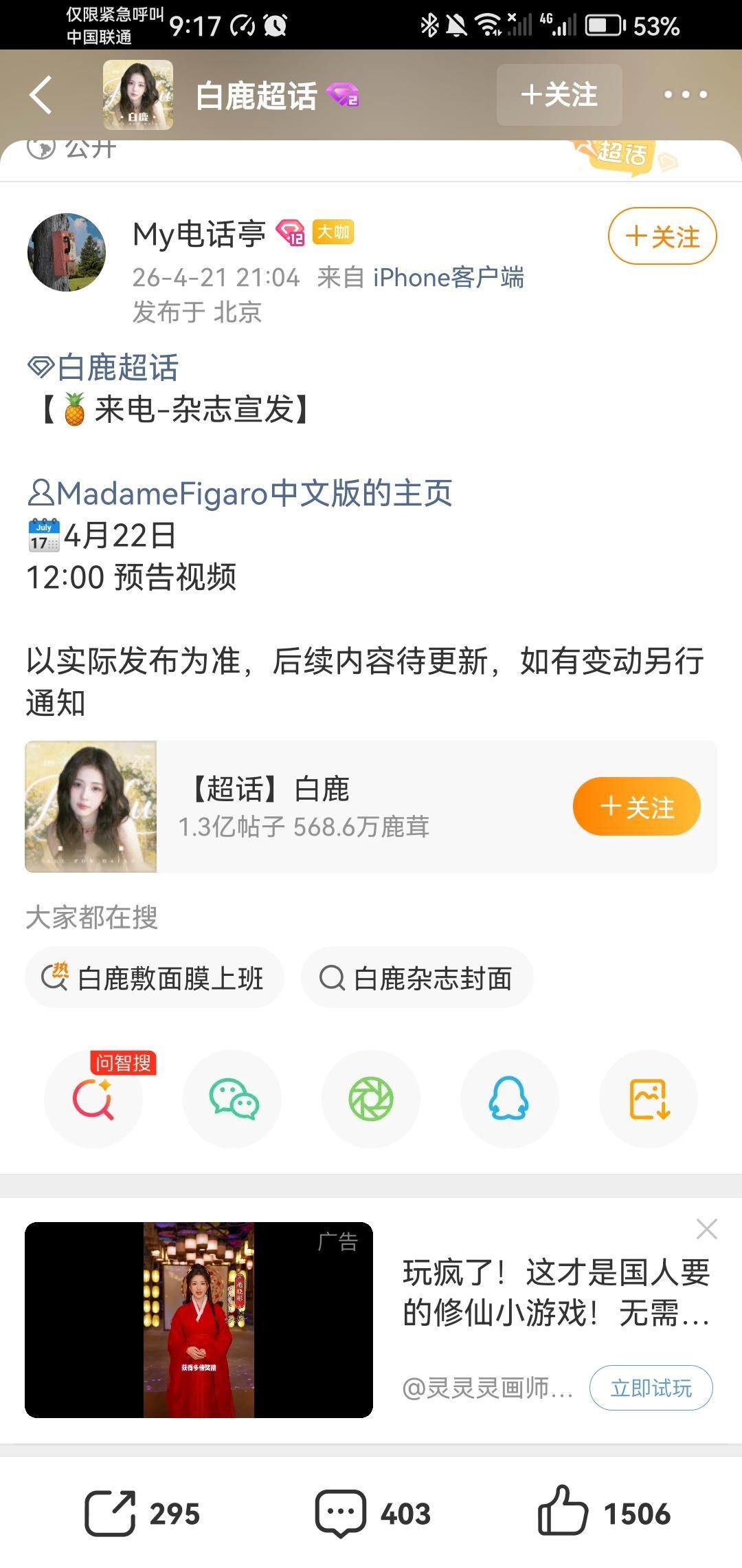 发现白鹿素颜好好看,奶呼呼的。白鹿资讯站刚刚通知,明天有一本白鹿杂志突袭发售。不