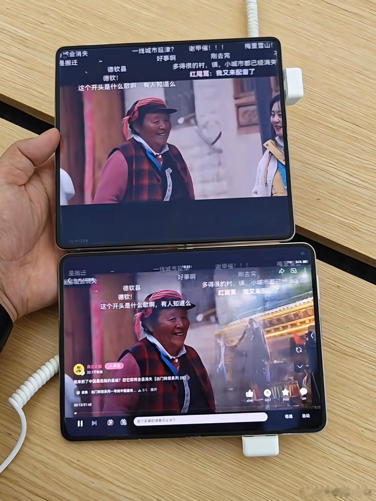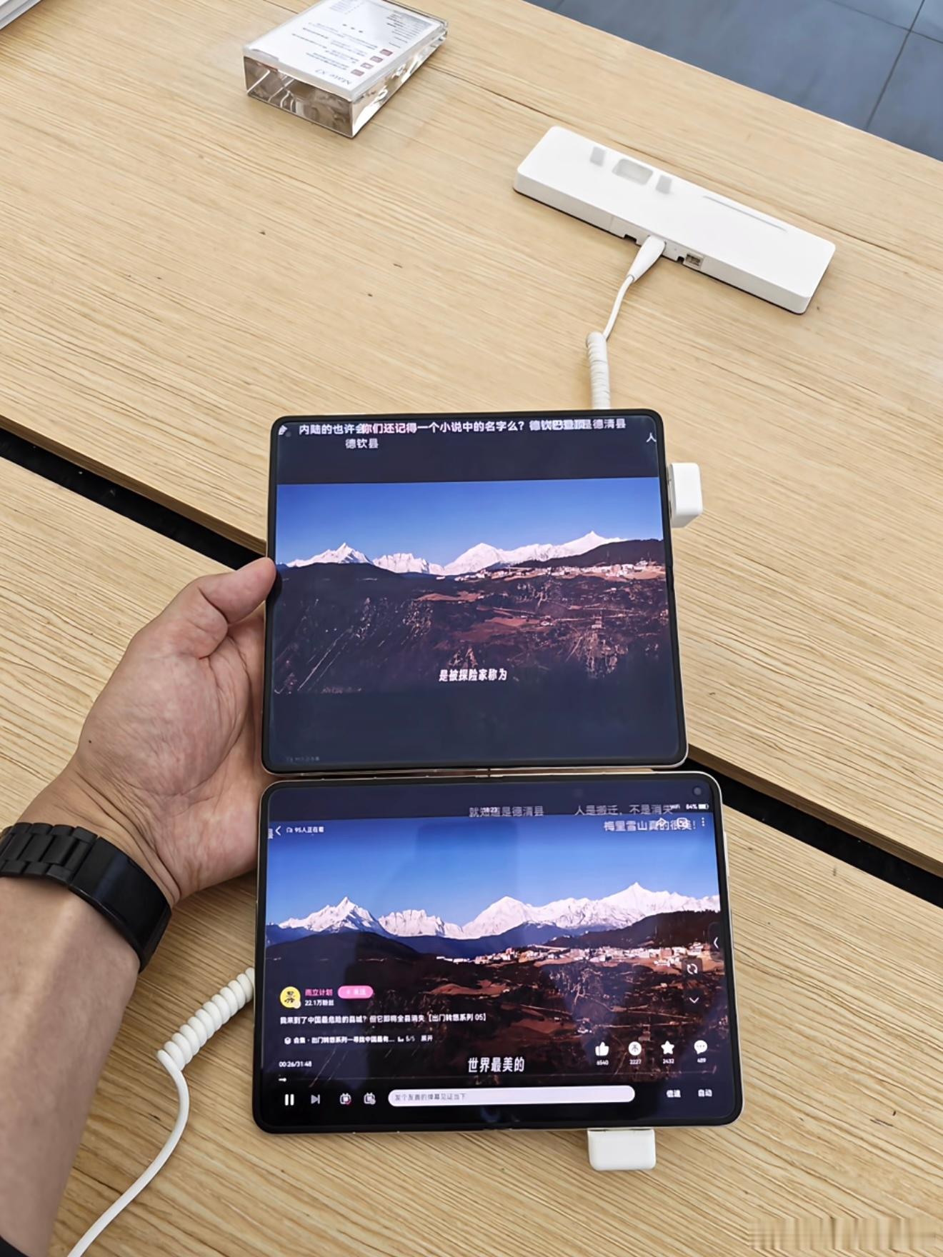 华为Mate X7和华为Pura X Max屏幕展开后的对比!