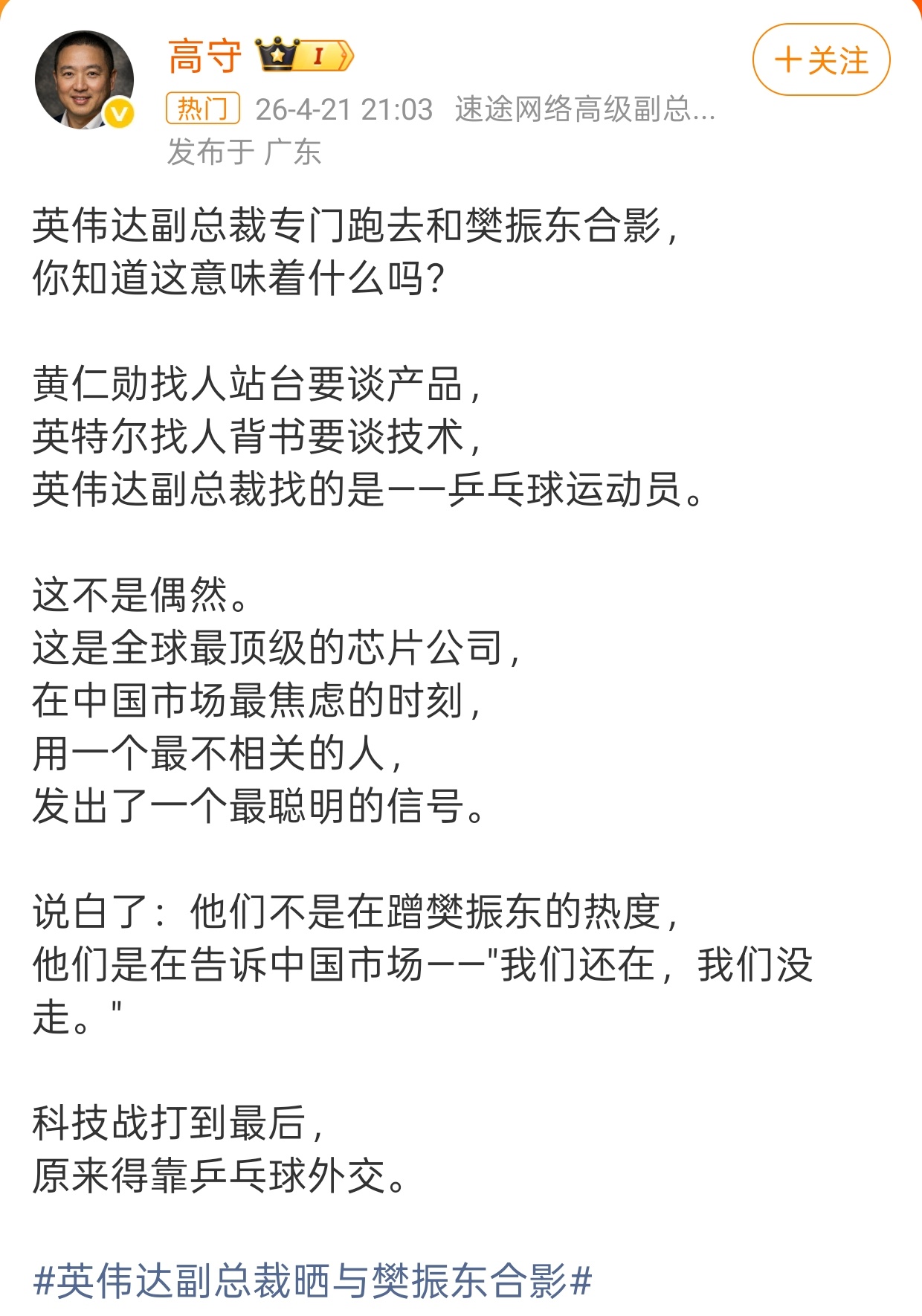 掌管乒乓球的神和掌管芯片的神见面了。这不是偶然,这是一场高级别的会面。