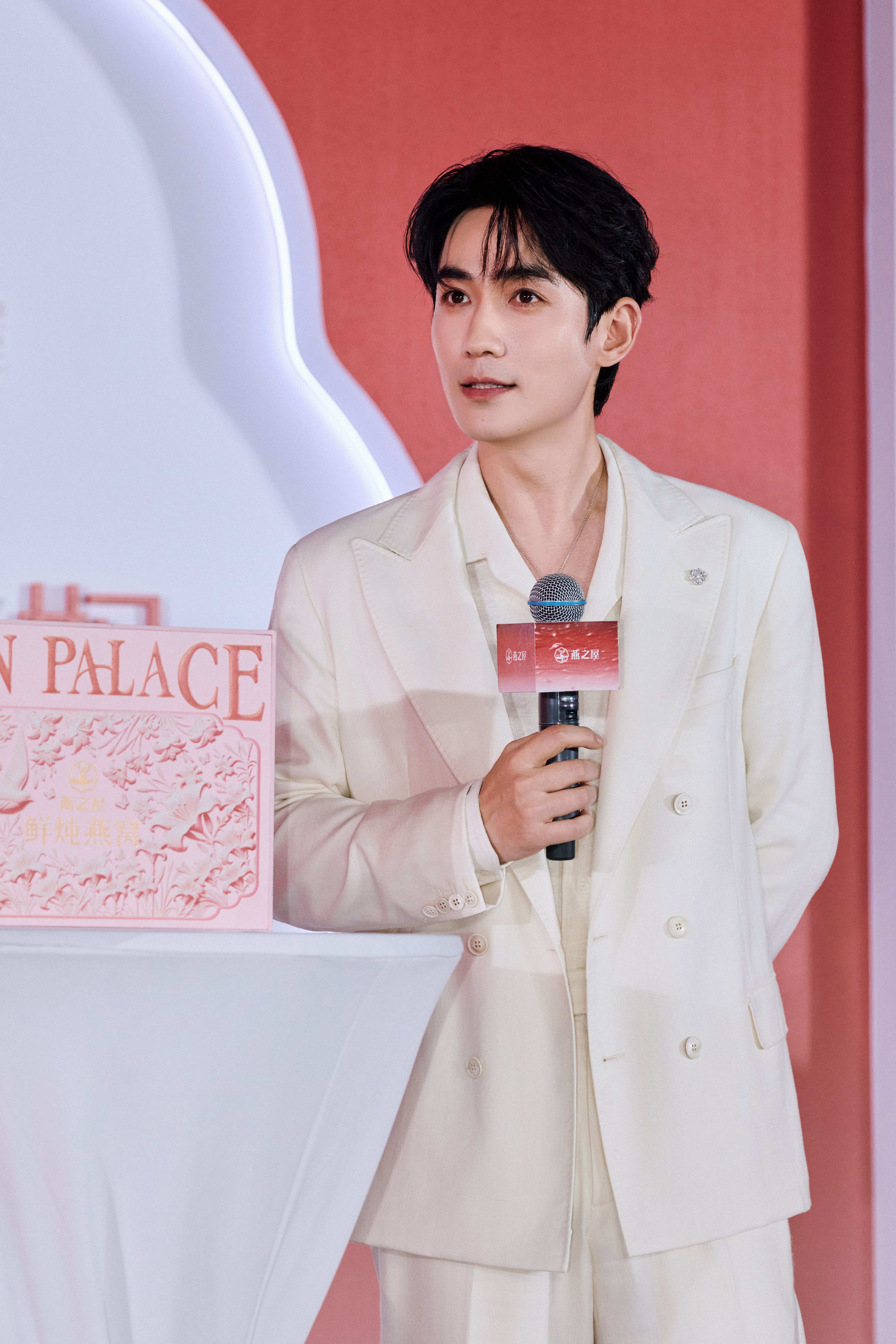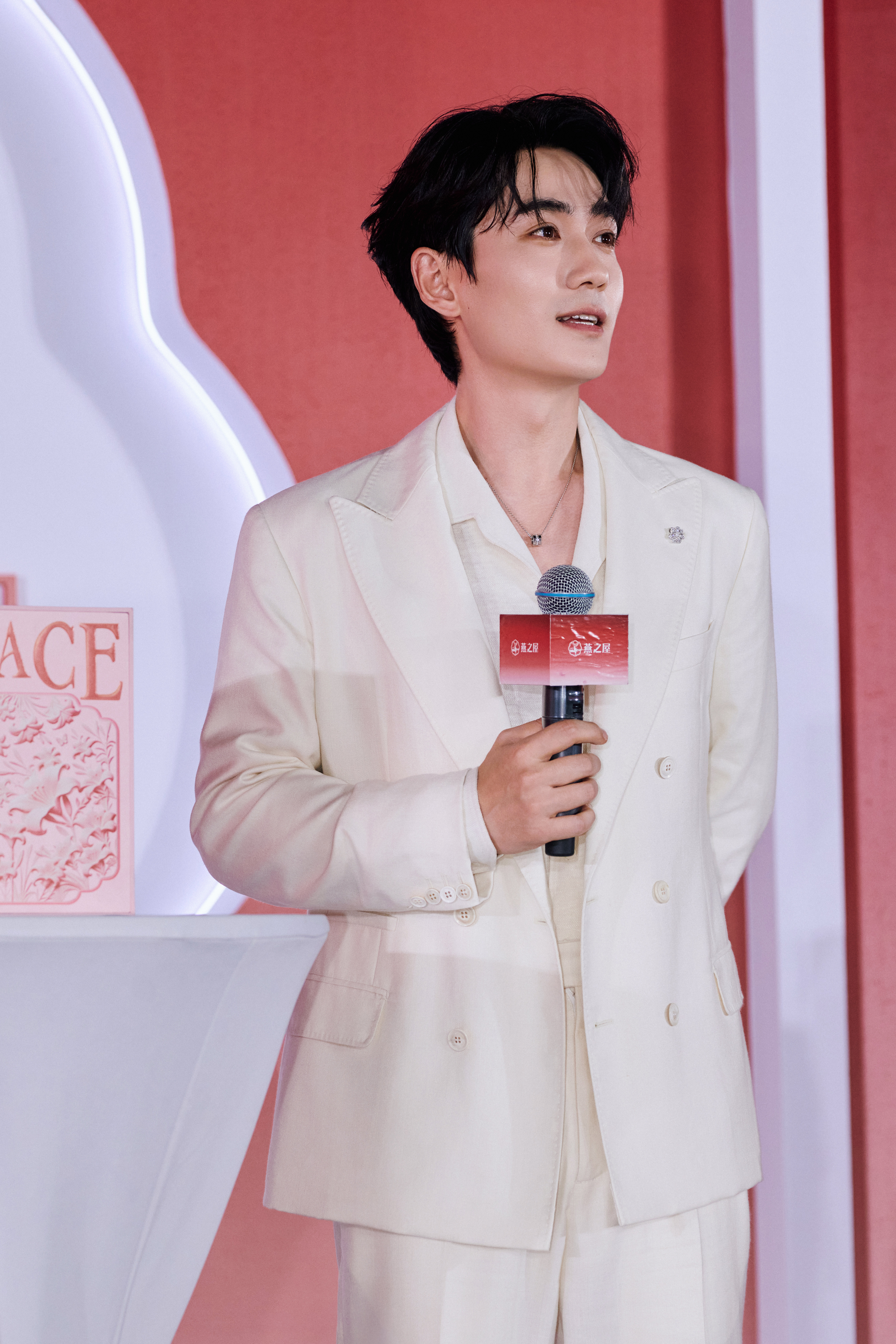朱一龙今日出席代言品牌线下 & 直播活动图集,一袭戗驳领双排扣西装搭配小V领衬衫