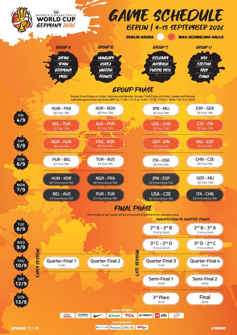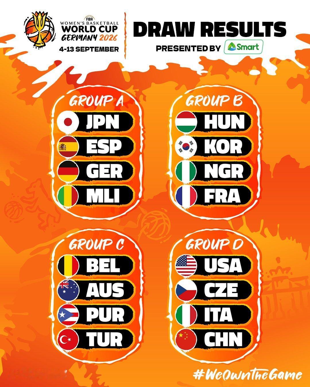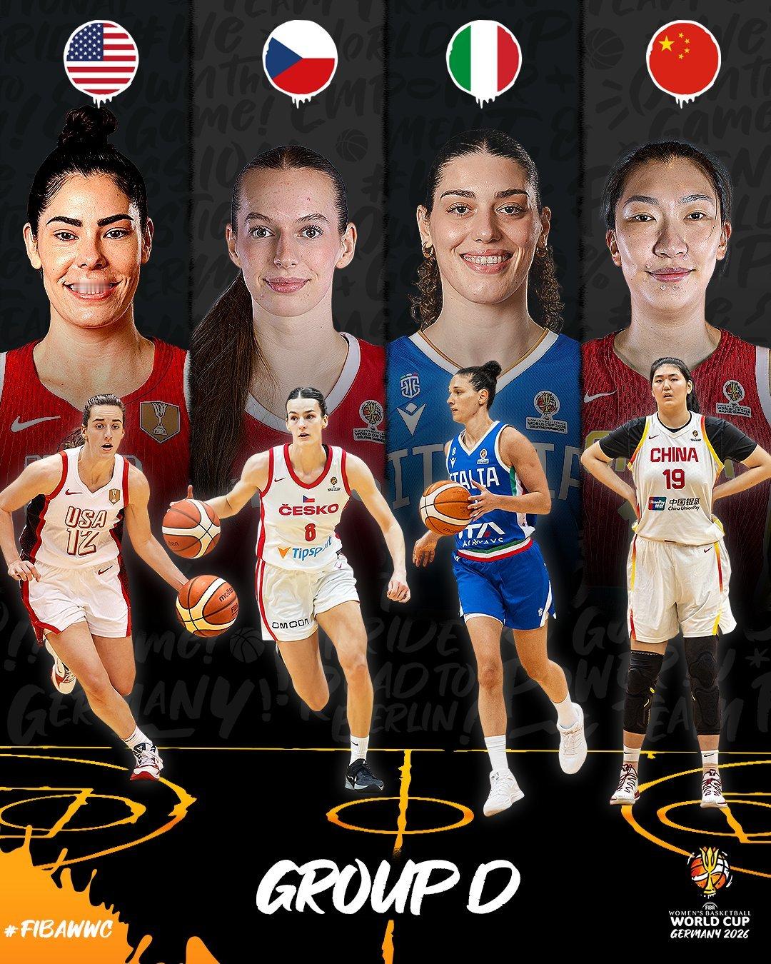 中国女篮世界杯抽签进入D组,和美国、意大利、捷克同组。