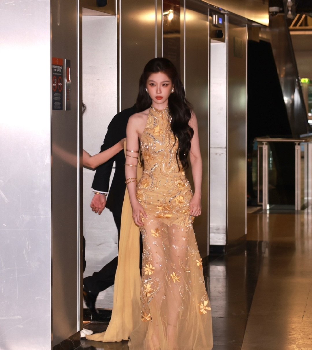 虞书欣金纱长裙虞书欣披肩长拖尾 虞书欣披肩长拖尾