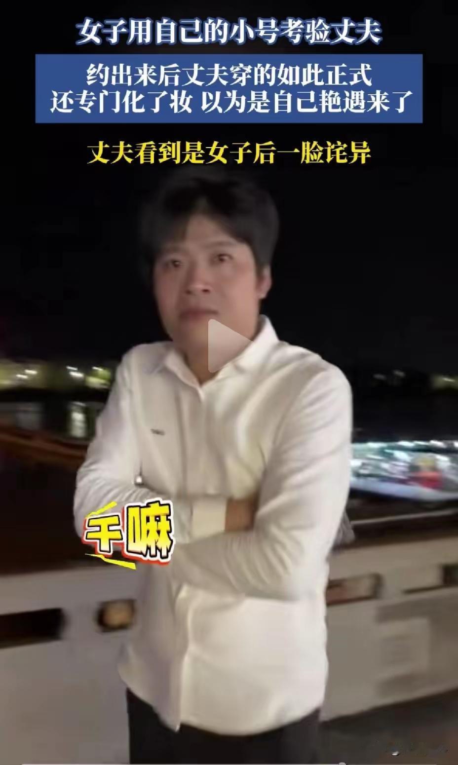 这老婆也是看透了自己的男人!自己的老公平时就是一个穷屌丝,邋里邋遢,无欲无求!女子通过小号跟老公搭讪并约好见面,老公约会那天难得穿上很正式的衬衣,脸上还画了妆,一看是自己老婆来了,一脸惊诧!这日子还能过吗?要被笑一辈子了!男人,自己老婆再漂亮也觉得外面的更好。