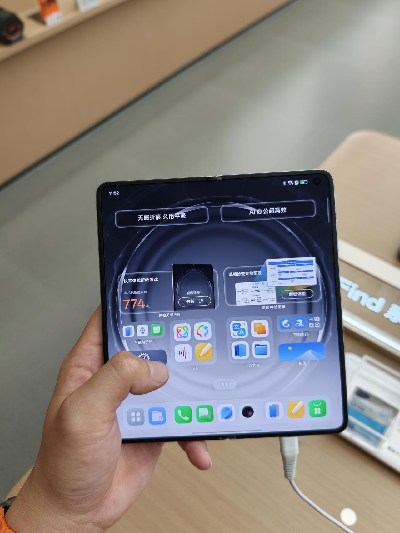 在门店体验完了感觉不错,特别是折痕这块做得很到位,亮屏息屏都看不出来,手指摸上去也感觉不到有凹痕,,用起来是真的放心。