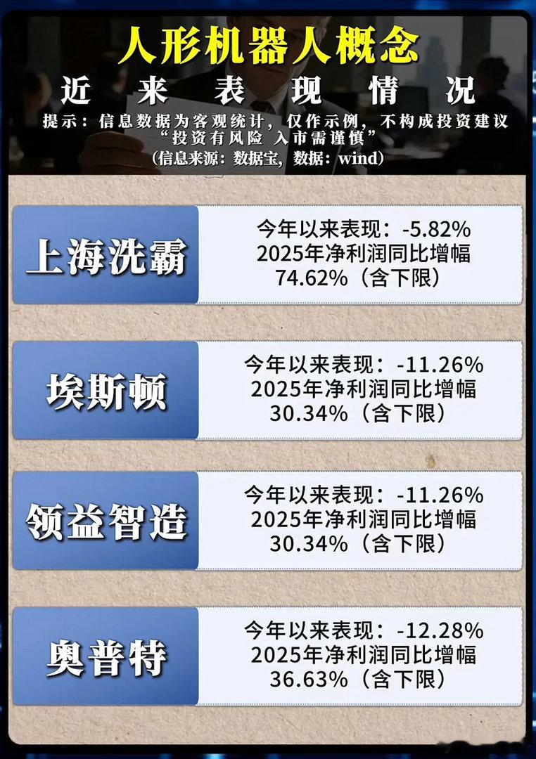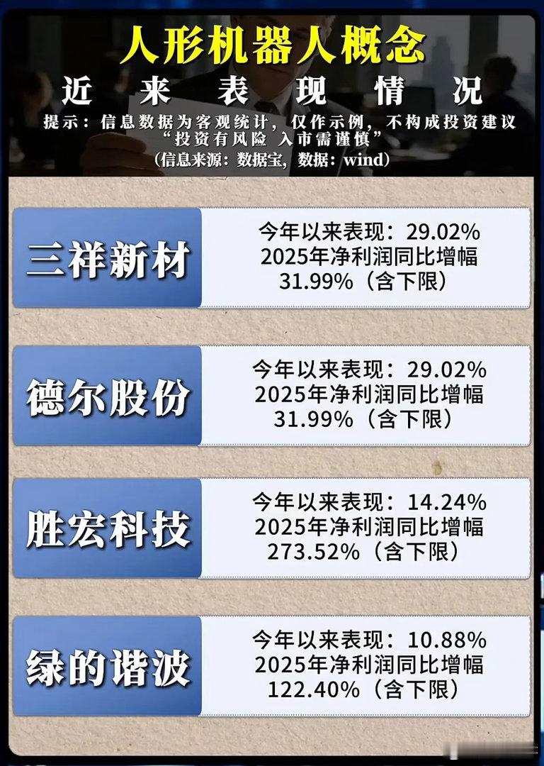 人形机器人“量产元年”将至,谁是被低估的真龙头?当荣耀“闪电”以50分26秒跑完半程马拉松,当自主导航技术让机器人告别“人工尾随”,2026年,人形机器人终于从实验室走向量产落地的关键路口。行业热度攀升背后,A股相关公司的分化走势,正在悄悄揭示谁才是产业链里的“实干派”。从今年以来的市场表现看,板块内个股走势明显分化:三祥新材、德尔股份以近30%的涨幅领跑,胜宏科技、绿的谐波等净利润同比大幅增长的公司也收获了两位数涨幅;但也有科大讯飞、埃斯顿等企业股价出现回调,市场资金的分歧一目了然。这种分化背后,是投资者对“概念炒作”和“业绩兑现”的重新定价。行业层面,两大关键突破正在重塑市场逻辑。其一,技术迭代进入加速期,刚落幕的人形机器人半程马拉松赛事上,国产机器人跑出的速度已逼近人类中长跑世界纪录,液冷散热、一体化关节模组等核心技术突破,让“机器人能干活”从口号变成现实;其二,政策与市场双轮驱动,工信部明确提出2026年核心零部件国产化率目标,叠加下游整机厂产能规划提速,国产供应链企业迎来订单爆发期。值得注意的是,净利润大幅预增的企业,在市场中获得了更强的信心支撑。胜宏科技、绿的谐波2025年净利润同比增幅分别超270%和120%,北特科技、豪鹏科技等企业也实现了60%以上的利润增长,这些企业正是减速器、关节模组等关键环节的核心供应商。而股价回调的公司中,部分企业的业绩增速明显低于市场预期,也反映出资金对“纯概念标的”的谨慎态度。2026年是人形机器人规模化量产与商业化落地元年,行业即将迎来真正的“淘汰赛”。短期来看,板块内部分化仍将持续,业绩兑现能力强、技术壁垒高的企业,有望在量产浪潮中脱颖而出;而那些缺乏核心竞争力的概念标的,终将被市场淘汰。对于投资者而言,与其追逐短期涨幅,不如聚焦那些“用业绩说话”的产业链核心企业,它们才是这波硬科技浪潮中,最具确定性的赢家。(注:以上数据仅为客观统计,不构成投资建议,股市有风险,投资需谨慎)