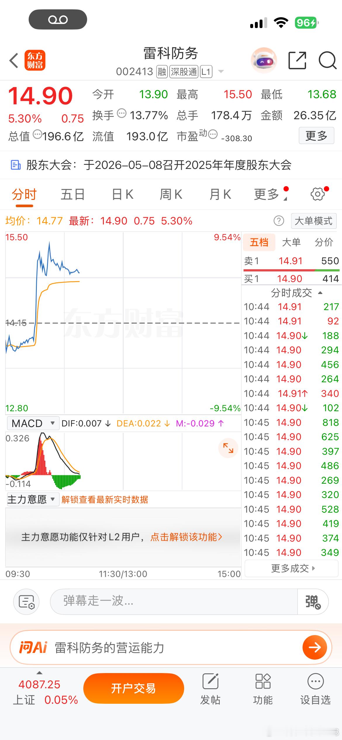 完美操作:周一布局雷科防务,今日直线冲击涨停! 主升浪跟上了~