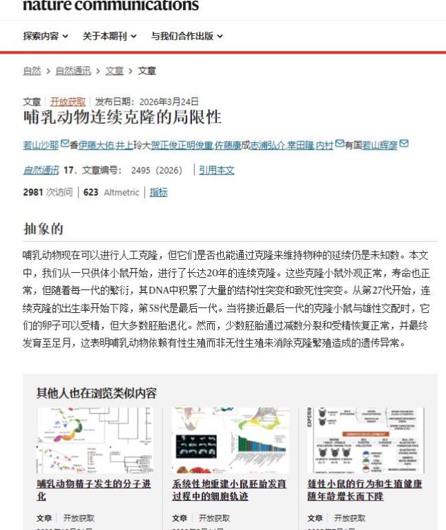 前五代克隆小鼠完美无缺,与正常小鼠无差别,学术界为之沸腾。但第15代起,克隆成功率断崖式下跌,胚胎畸形、死胎等问题频发。