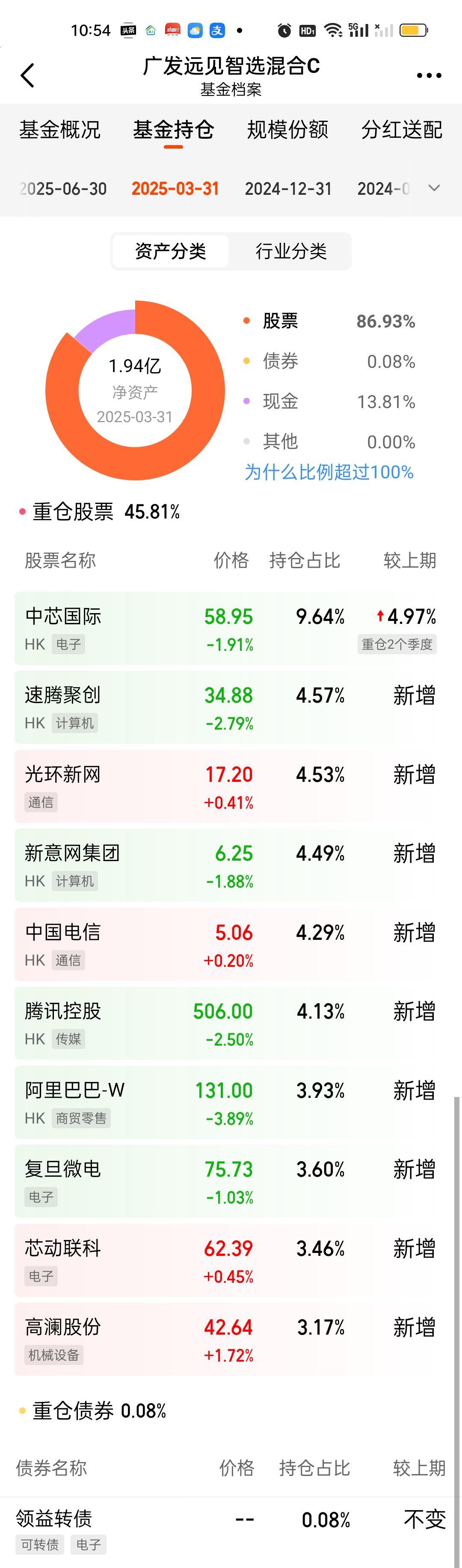 可以说千呼万唤始出来。大家期待许久的,今年以来收益率断崖式领先的广发远见智选第一季度持仓终于更新了。