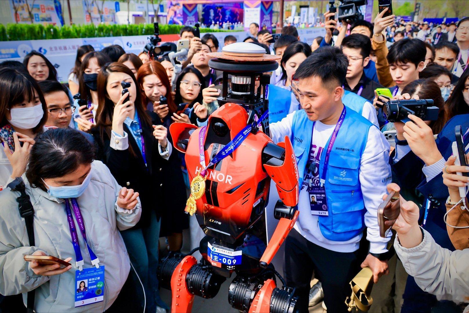 哇,亦庄机器人半马太燃了!首次参赛的荣耀军团包揽前六,还直接把人类半马纪录给刷新