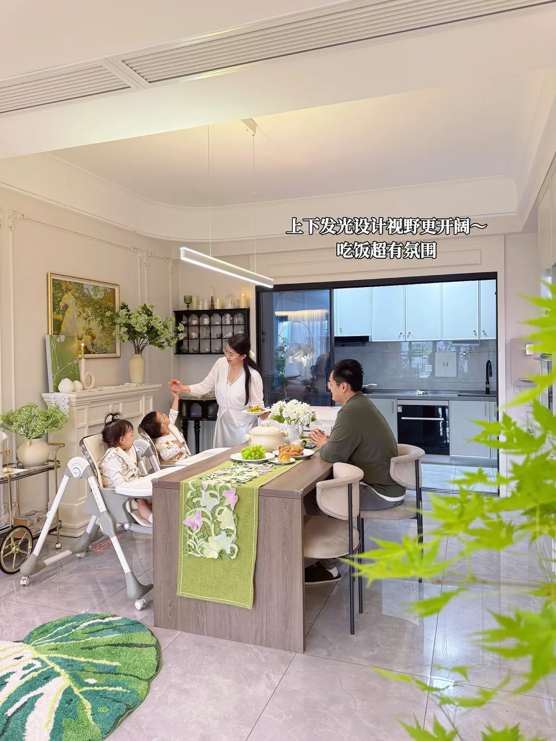 之前餐厅灯要么暗没氛围,要么直射刺眼,吃饭都不舒心饭菜都看着没食欲。