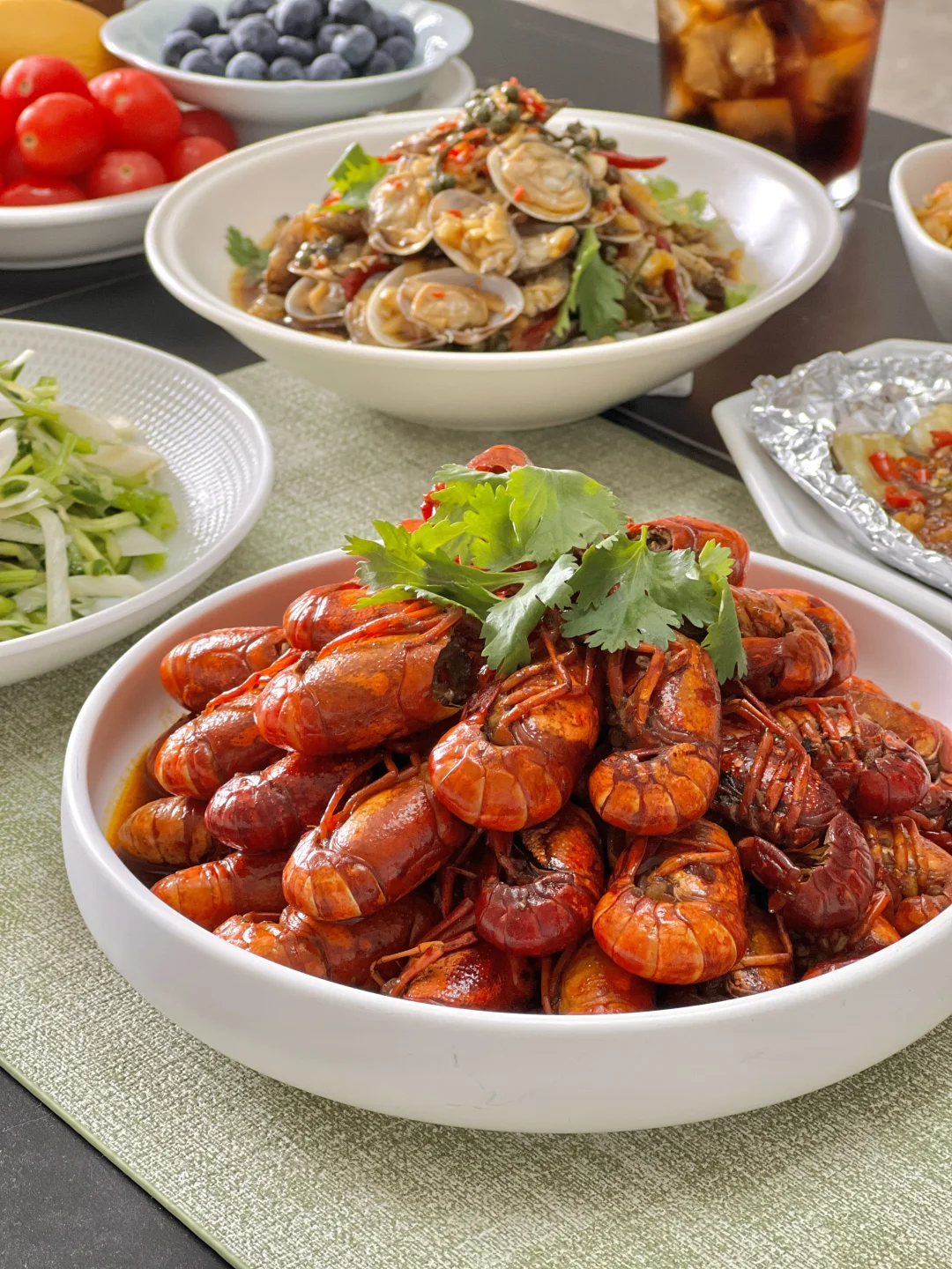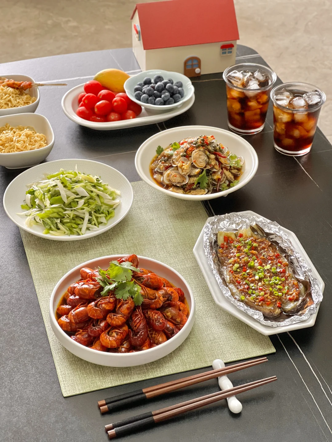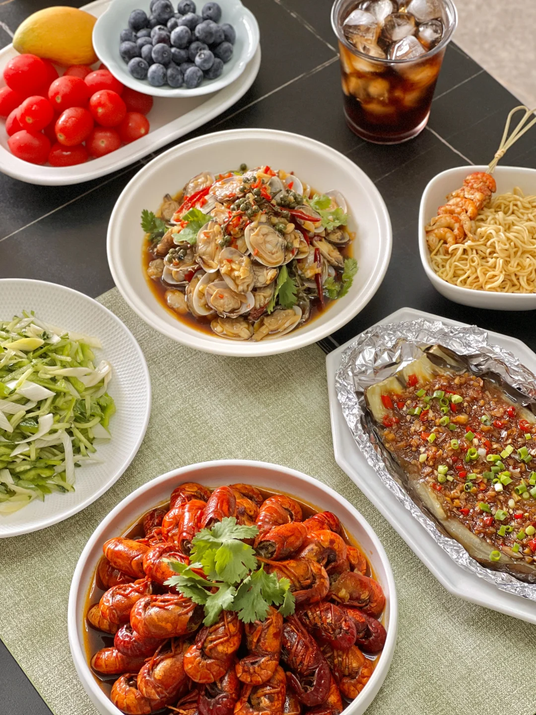 在家用了不到一小时,就复刻出了一桌大排档硬菜!麻辣小龙虾的汤汁再拌一碗方便面🍜一口直接上头!还有椒麻花蛤、烤茄子妥妥大排档必点菜,在家简单几步就能做出来![派对R][派对R][派对R]