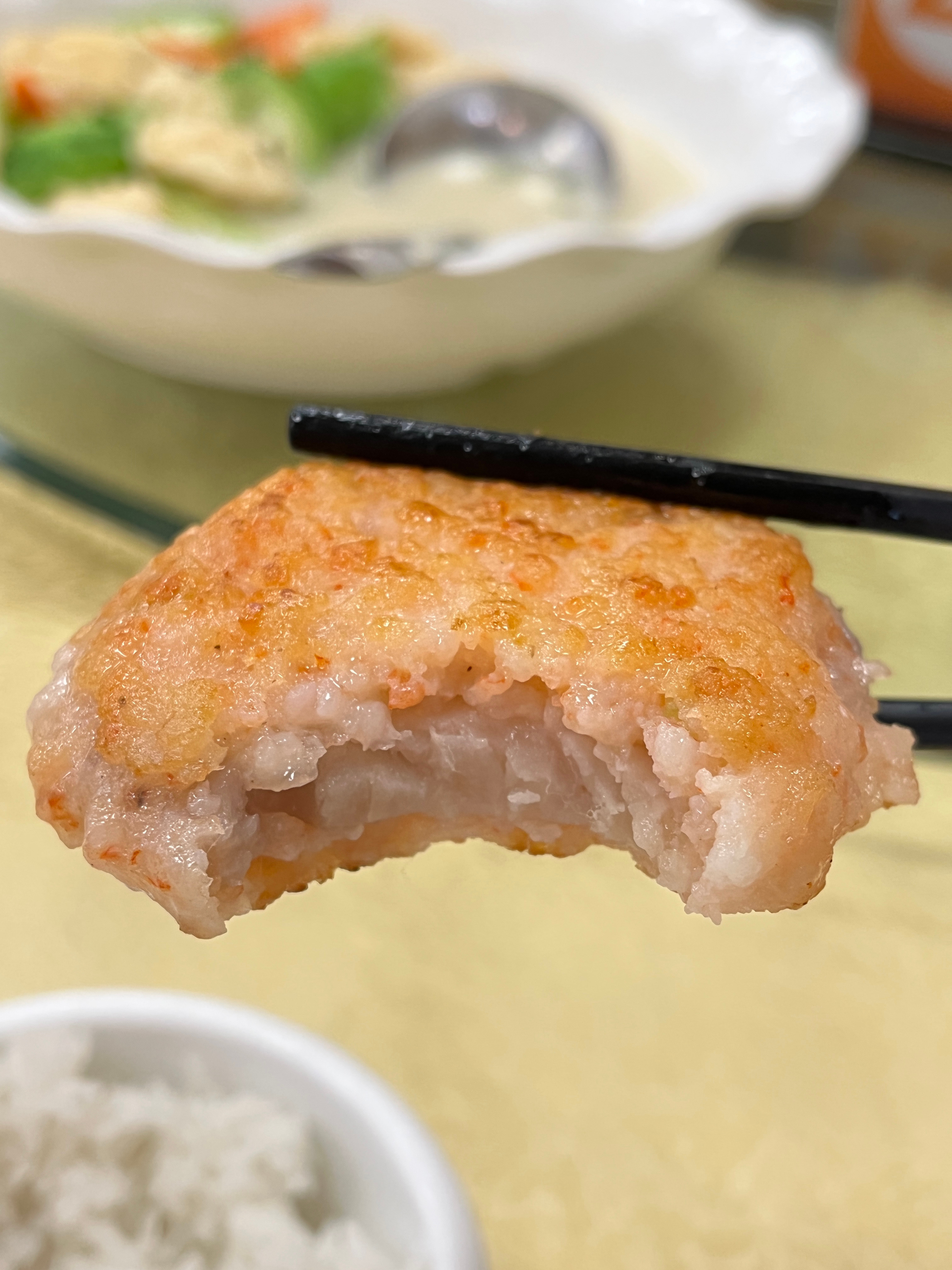 鲜虾藕饼🦐上桌都在夸赞好厚一个!虾肉包裹着脆藕片,吃起来口感很丰富哦~