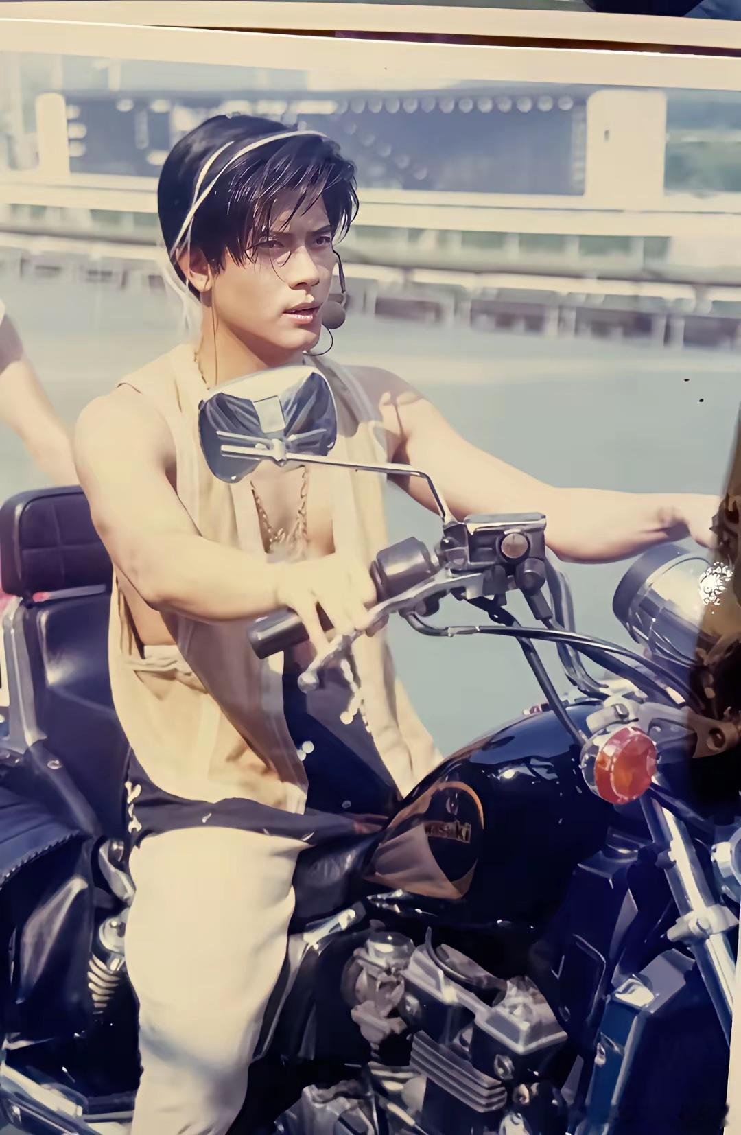 郭富城早年拍摄的光阳机车广告画面,这个广告让他在1990年一炮而红。