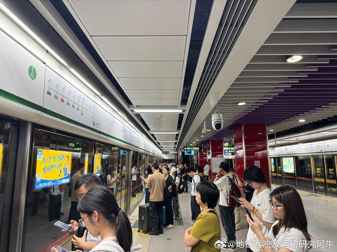 广州地铁 网友:2026年4月22日(周三)广州地铁晚高峰前客流画面投稿。图1为