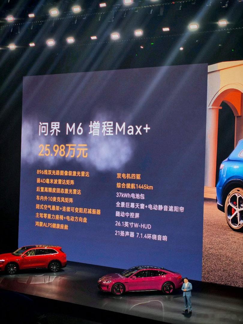 问界 M6 价格:增程 Max+:25.98 万元,综合续航 1445km增程