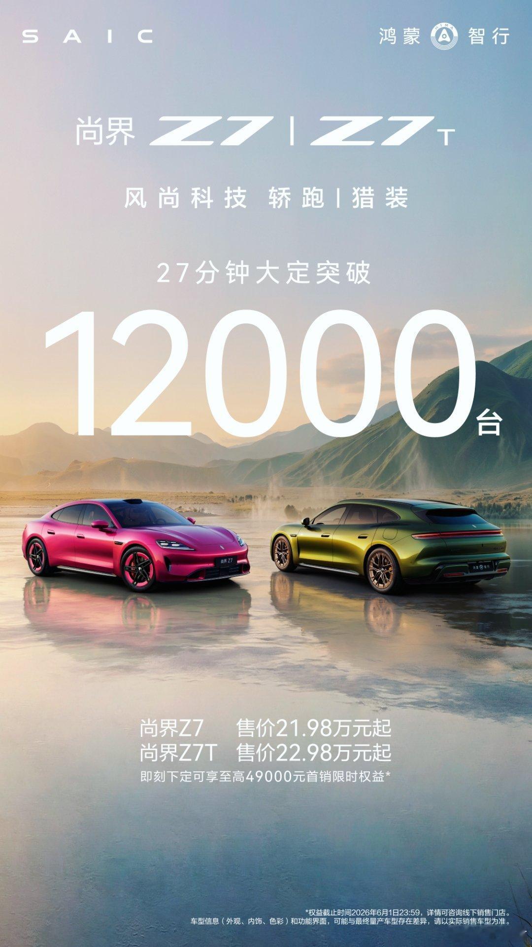 这比什么口碑更有说服力!尚界Z7大定27分钟破12000台数据就是最好的证明,车