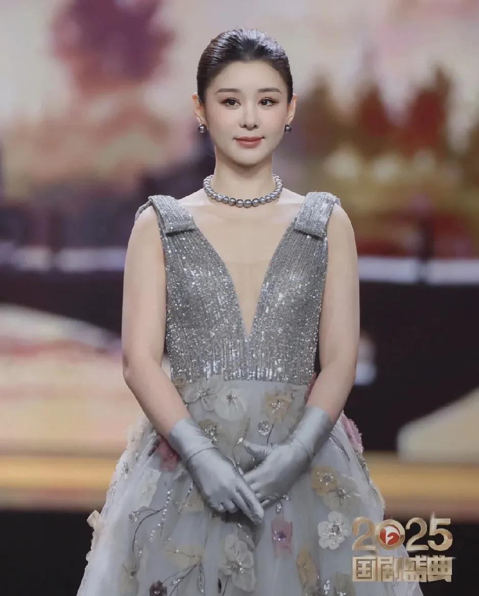 2025,安徽卫视国剧盛典上,李小萌戴上了大溪地铂金灰项链,品质非常好。