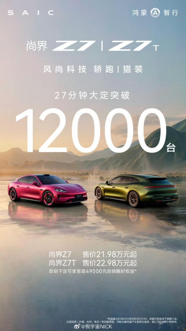 尚界Z7大定27分钟破12000台全系标配华为乾崑智驾ADS 4.1、鸿蒙座舱等智能化配置,确实精准击中了年轻用户(95后占比超60%)对“科技+实用”的双重需求,从而创造了27分钟大定破1.2万台的爆发式战绩。