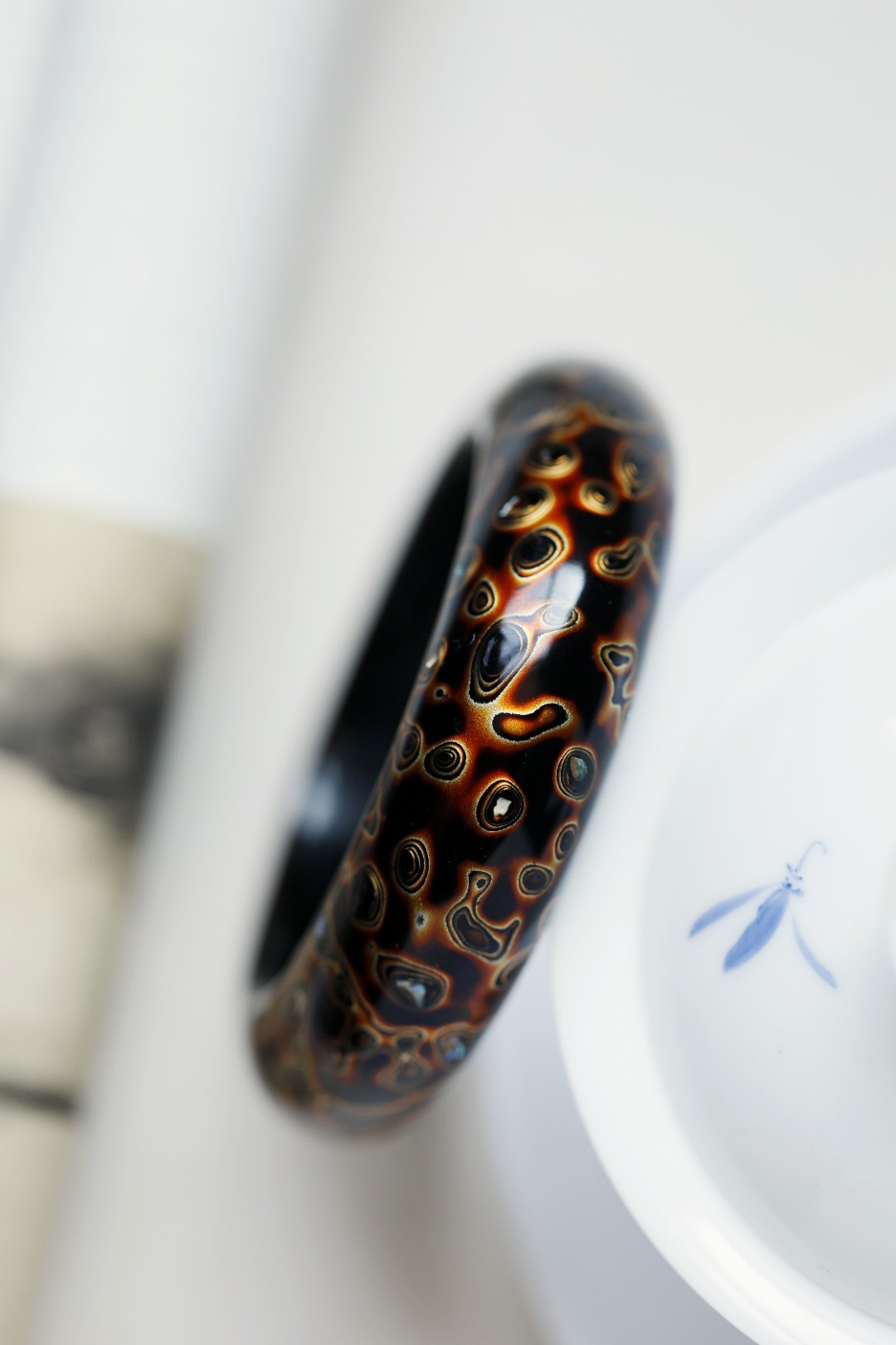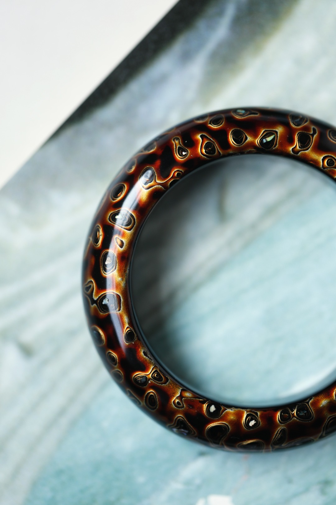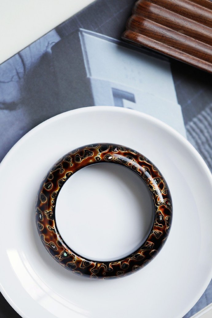 大漆【黑金】贵妃镯腕上风景,看上去华贵,戴起来轻松。可正式可休闲,倍添女人味。2