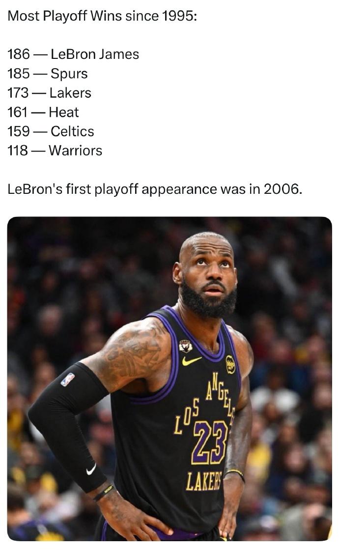 1995年以来季后赛胜场数: