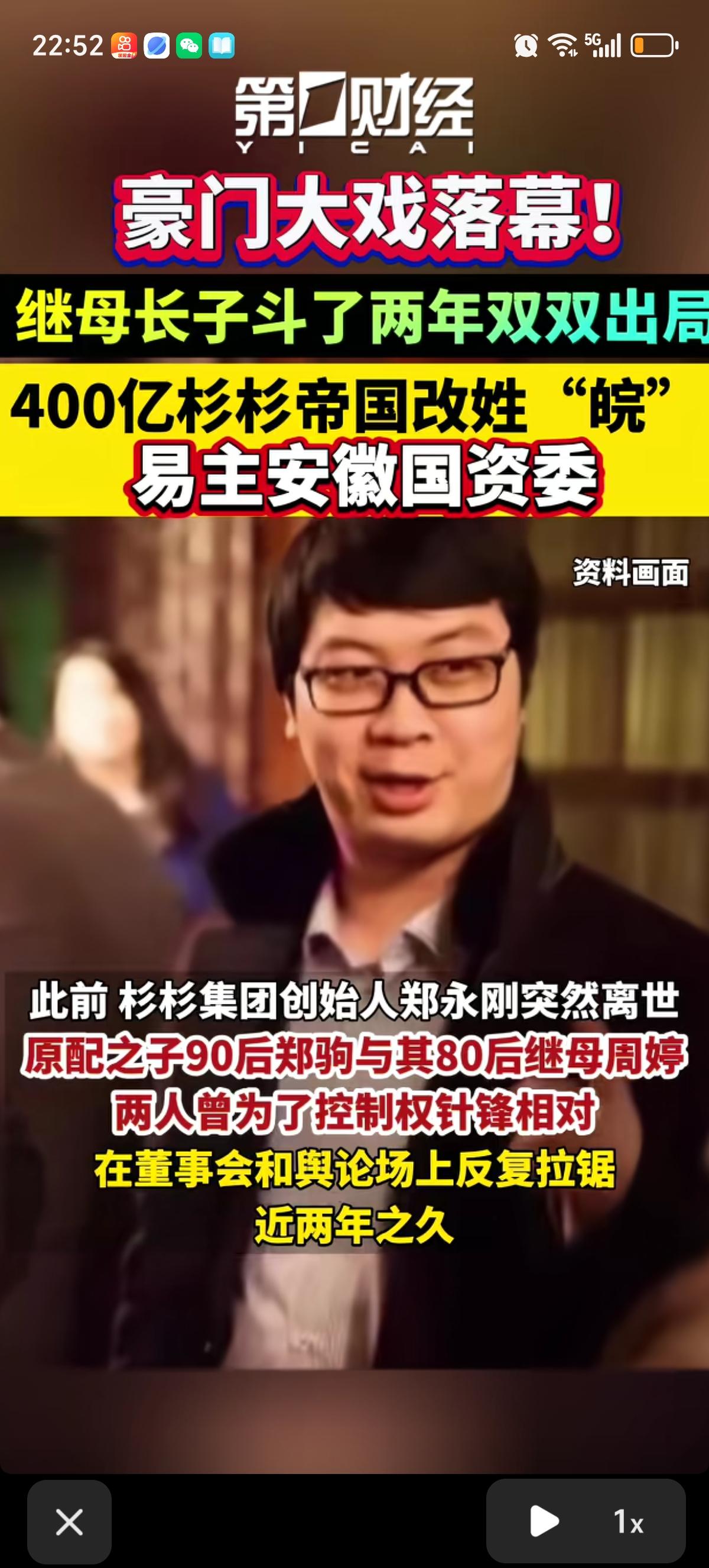 杉杉集团创始人郑永刚突然去世,留下了市值400亿的家业,他的儿子郑驹(原配生的90后)和遗孀周婷(80后继母,以前是财经主播),为了控制权斗了快两年。