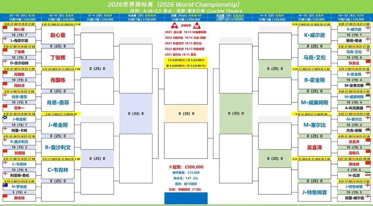 今天没有下午5点的比赛,晚上8点,16强战肖国栋对阵墨菲,斯佳辉对阵瓦菲第二阶段,凌晨2点16强战凯伦威尔逊对阵艾伦,庞俊旭对阵罗伯逊第二阶段。