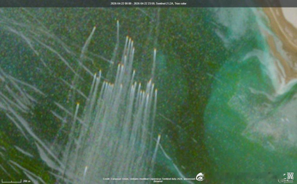 图2、3是4月22日伊朗在霍尔木兹海峡部署的大量快艇。