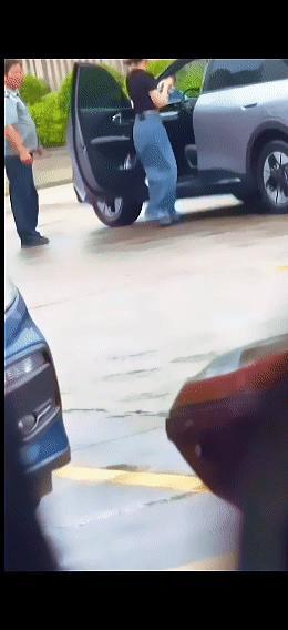 之后传出来监控视频,显示女子接孩子过程中,把车停在路边,保安应该是不让停车,就上去拍打车窗并辱骂,然后女司机想要下车,保安连续两次猛推车门,车门夹住女司机的脚了。