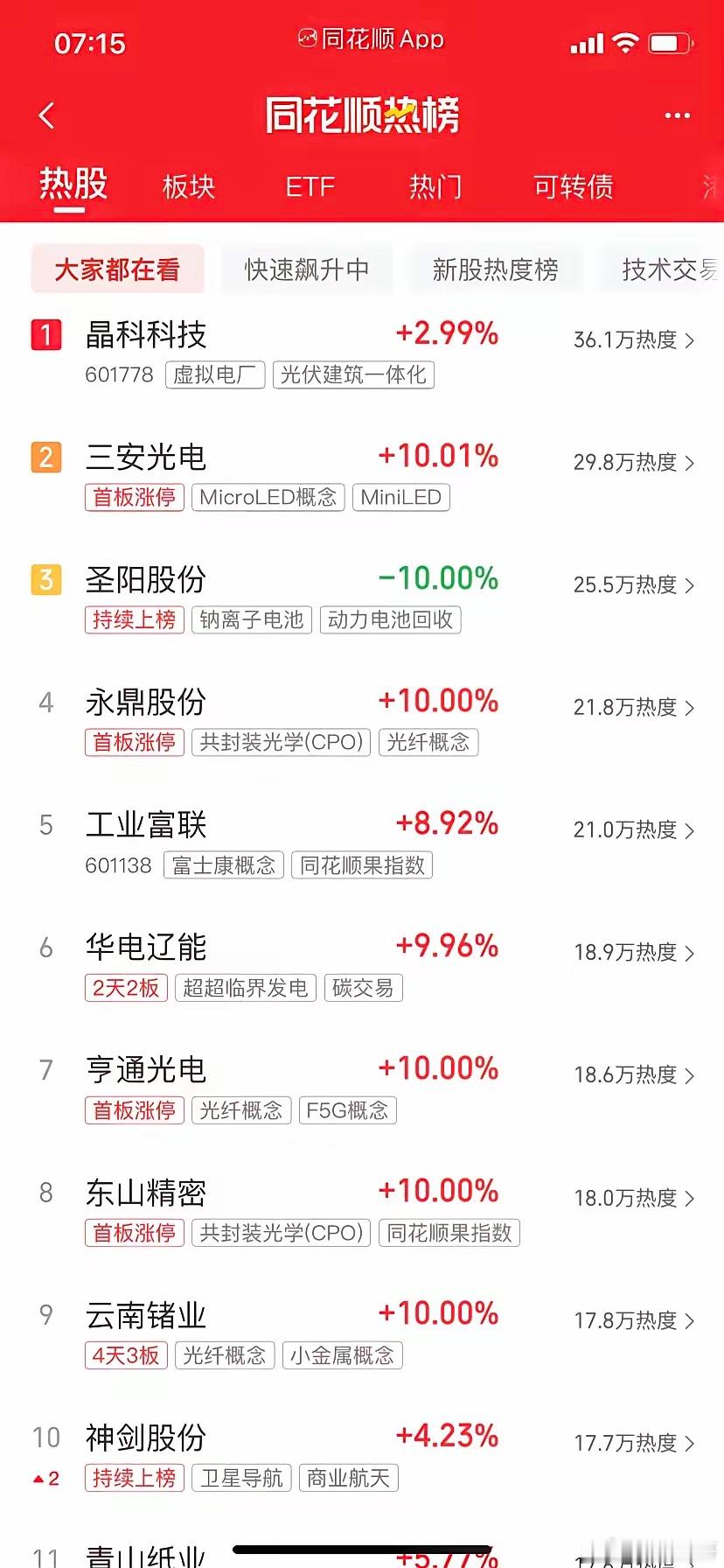 今天炒什么,一起来看看热榜第一名,晶科同学,虚拟电厂,光伏第二名,三安 同学,光