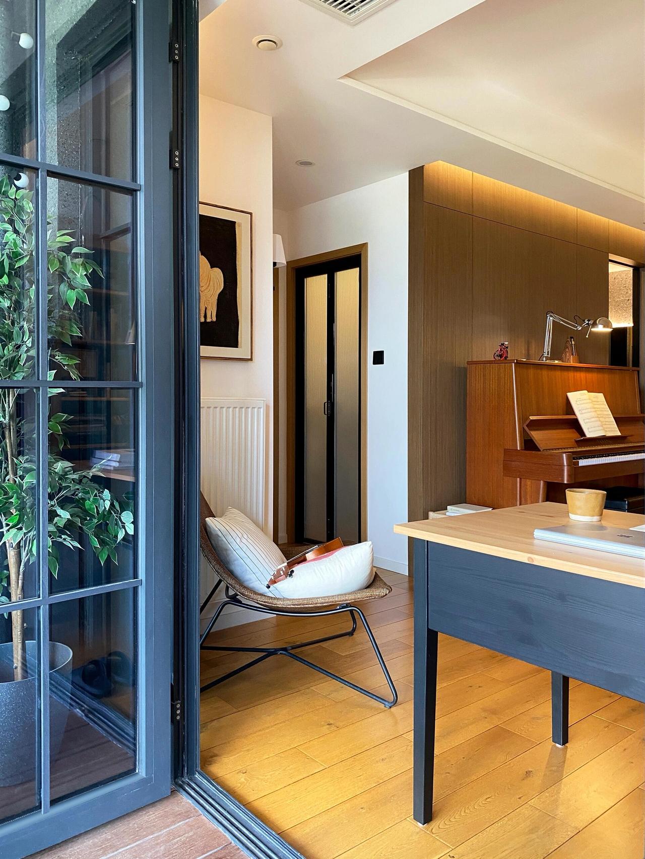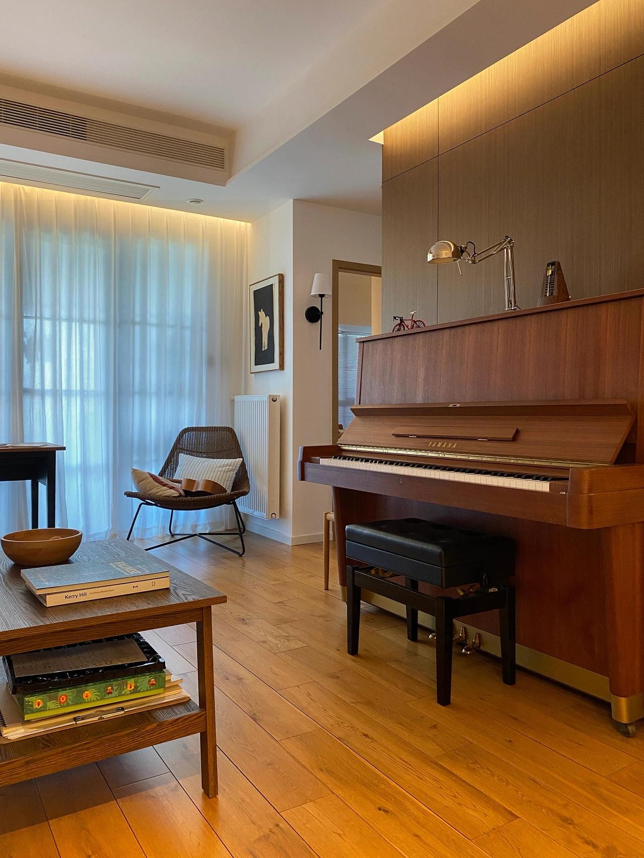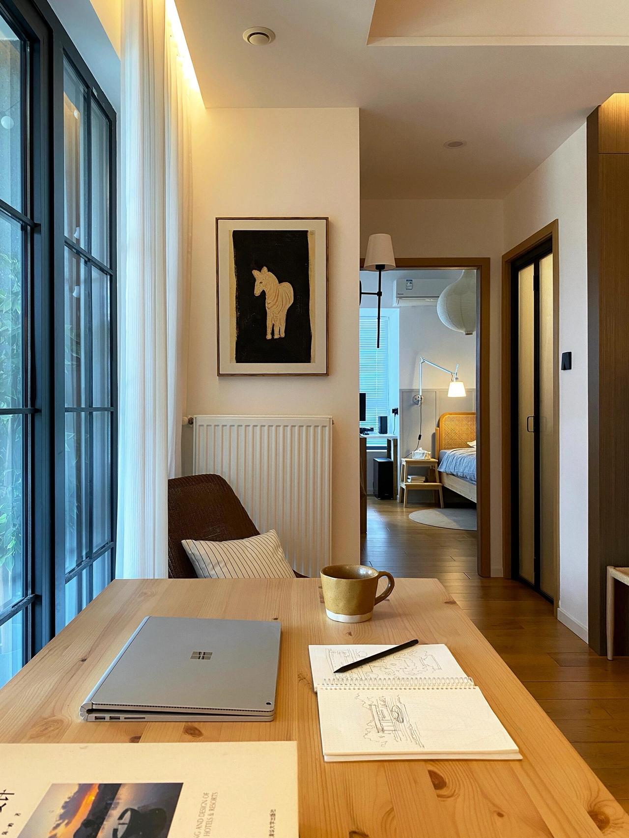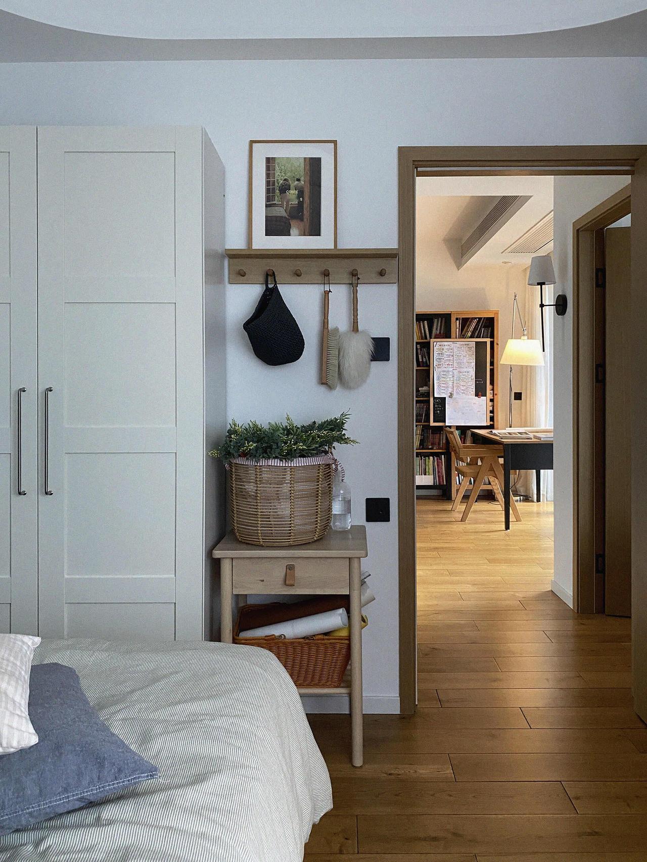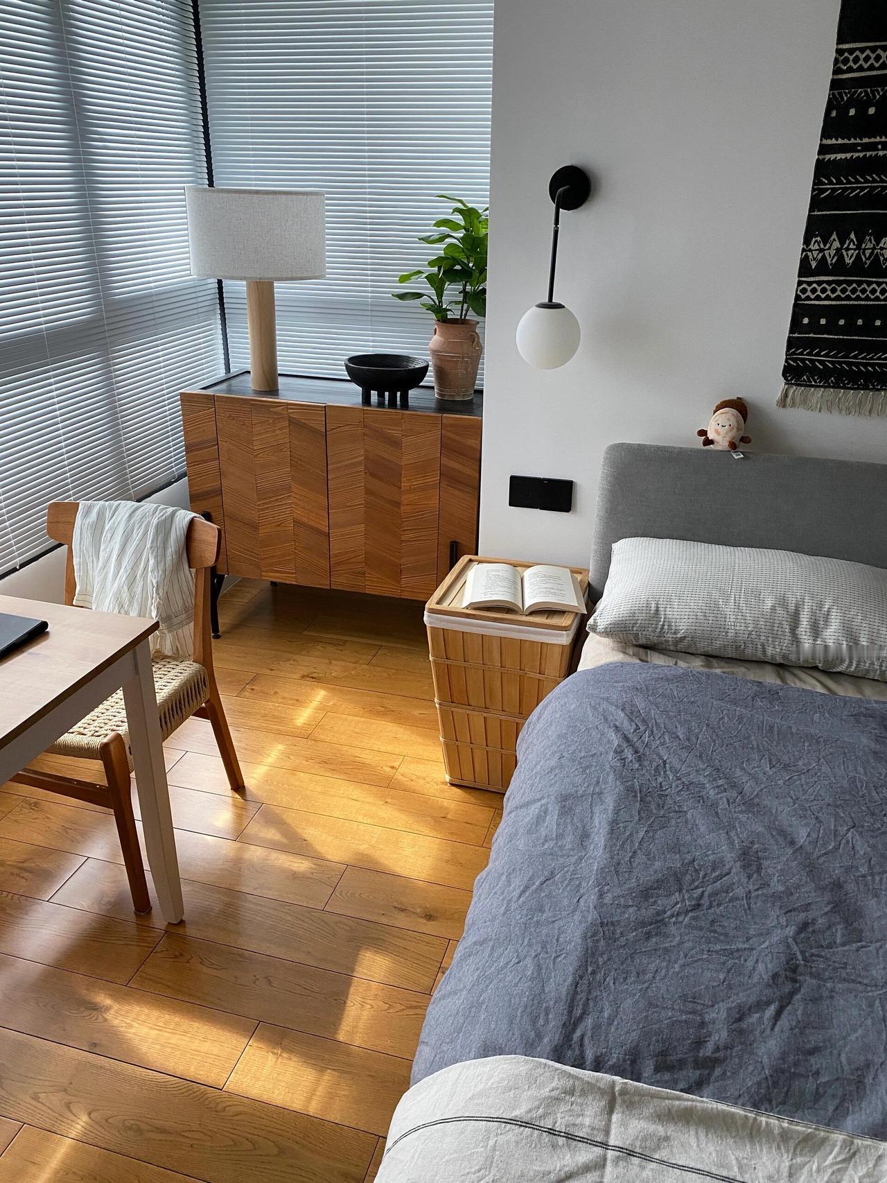 他们没追什么风格。不搞奶油风,不做侘寂风,也不要什么网红打卡背景墙,就是简简单单的原木色家具,白墙,木地板,再加几盆绿植。东西不多,但每一件都用得顺手。