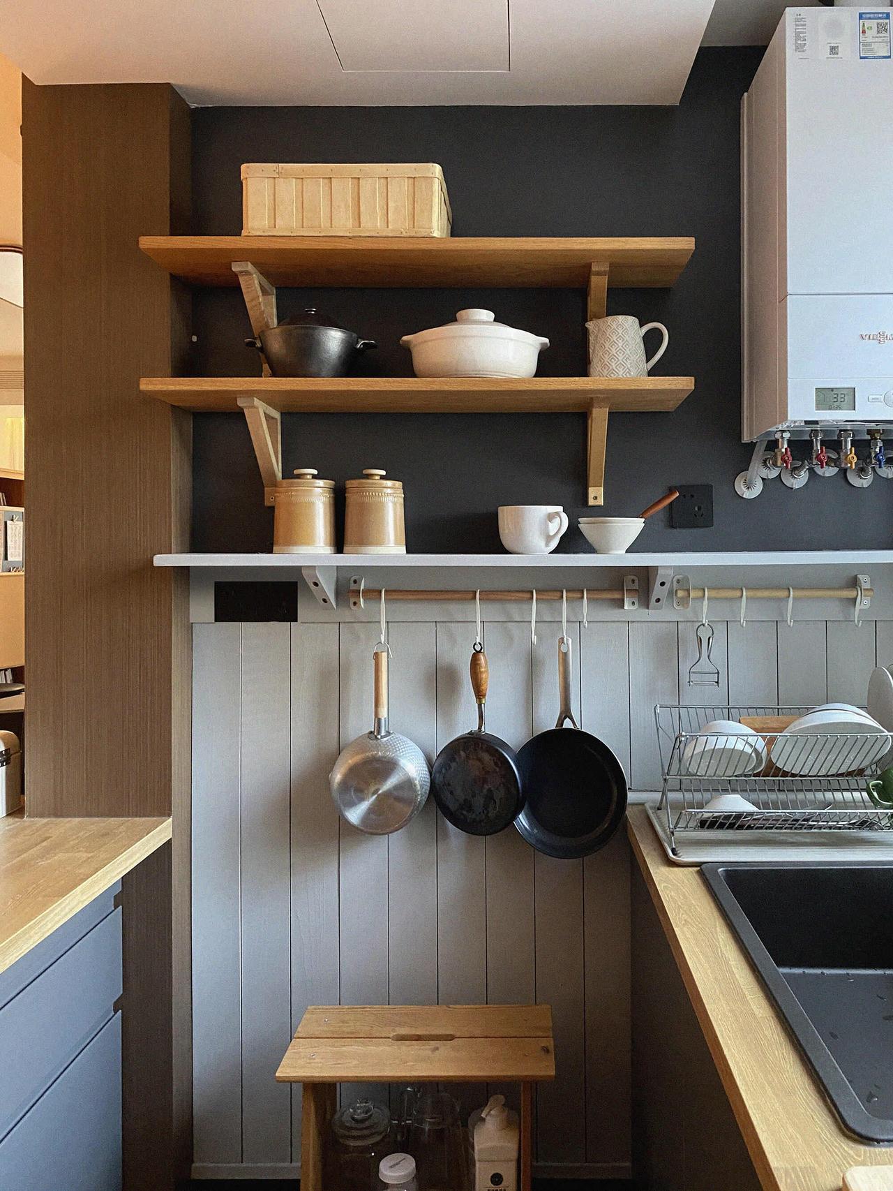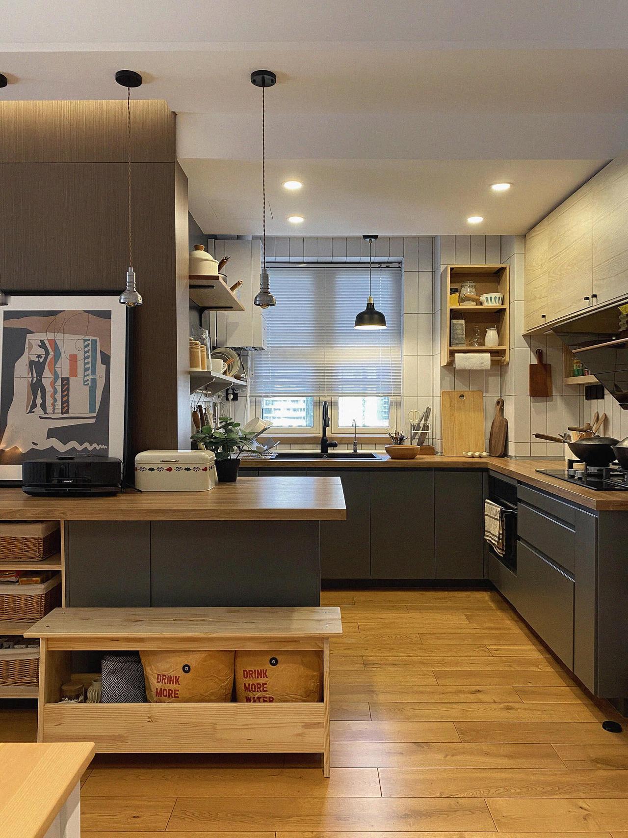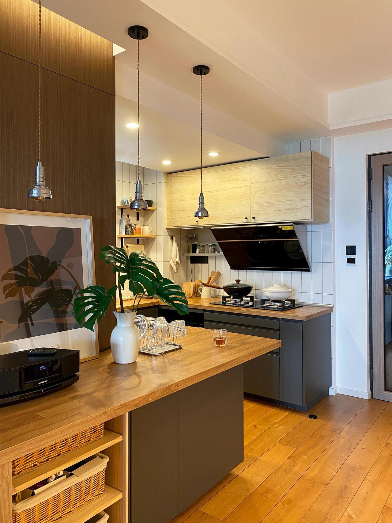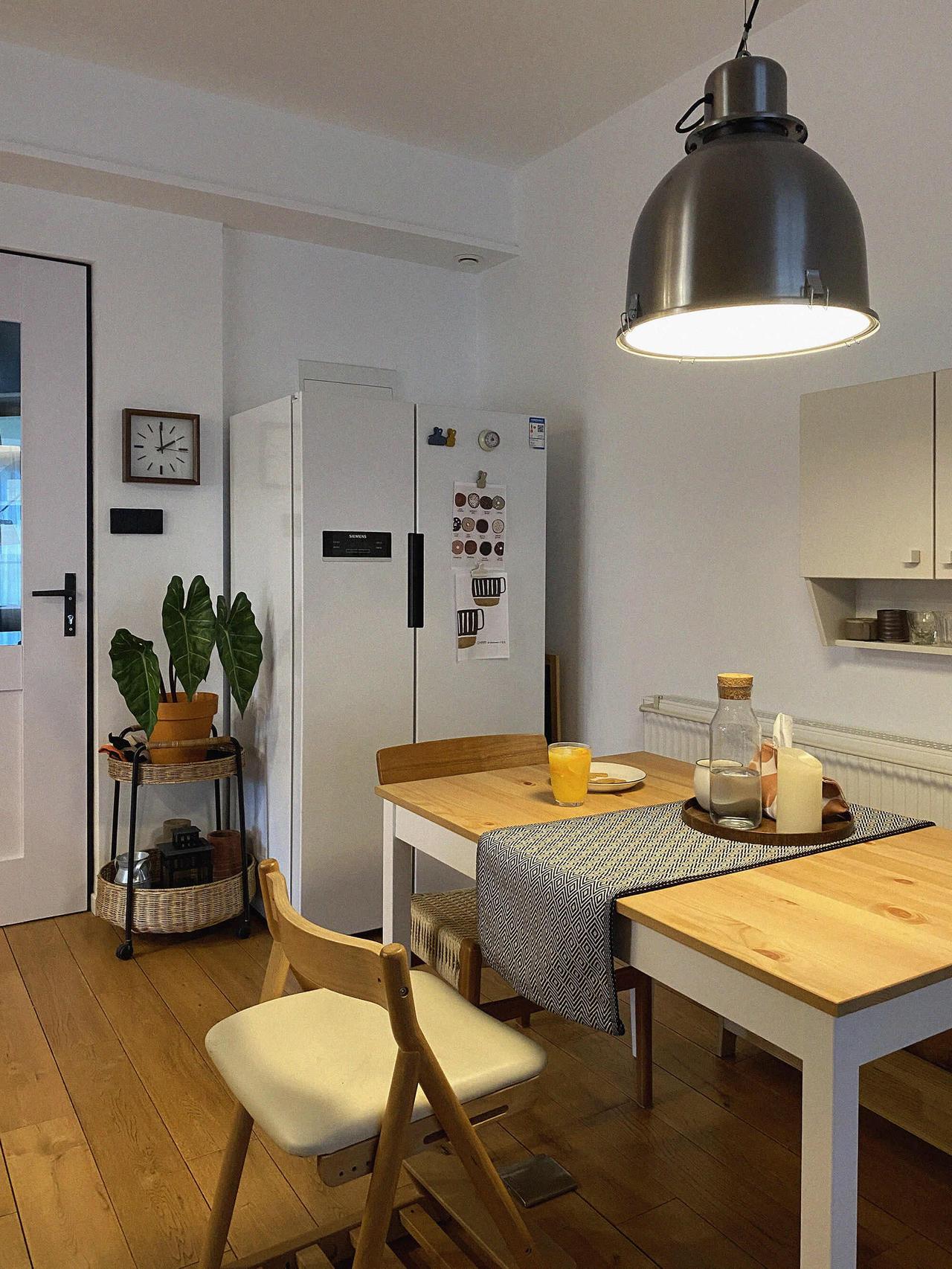 夫妻俩都是设计师,没有请装修公司,自己画图、自己盯工、自己一点点改,老房子的结构尽量不动,敲掉了厨房的隔墙,做成开放式;客餐厅连在一起,空间一下子通透了不少。