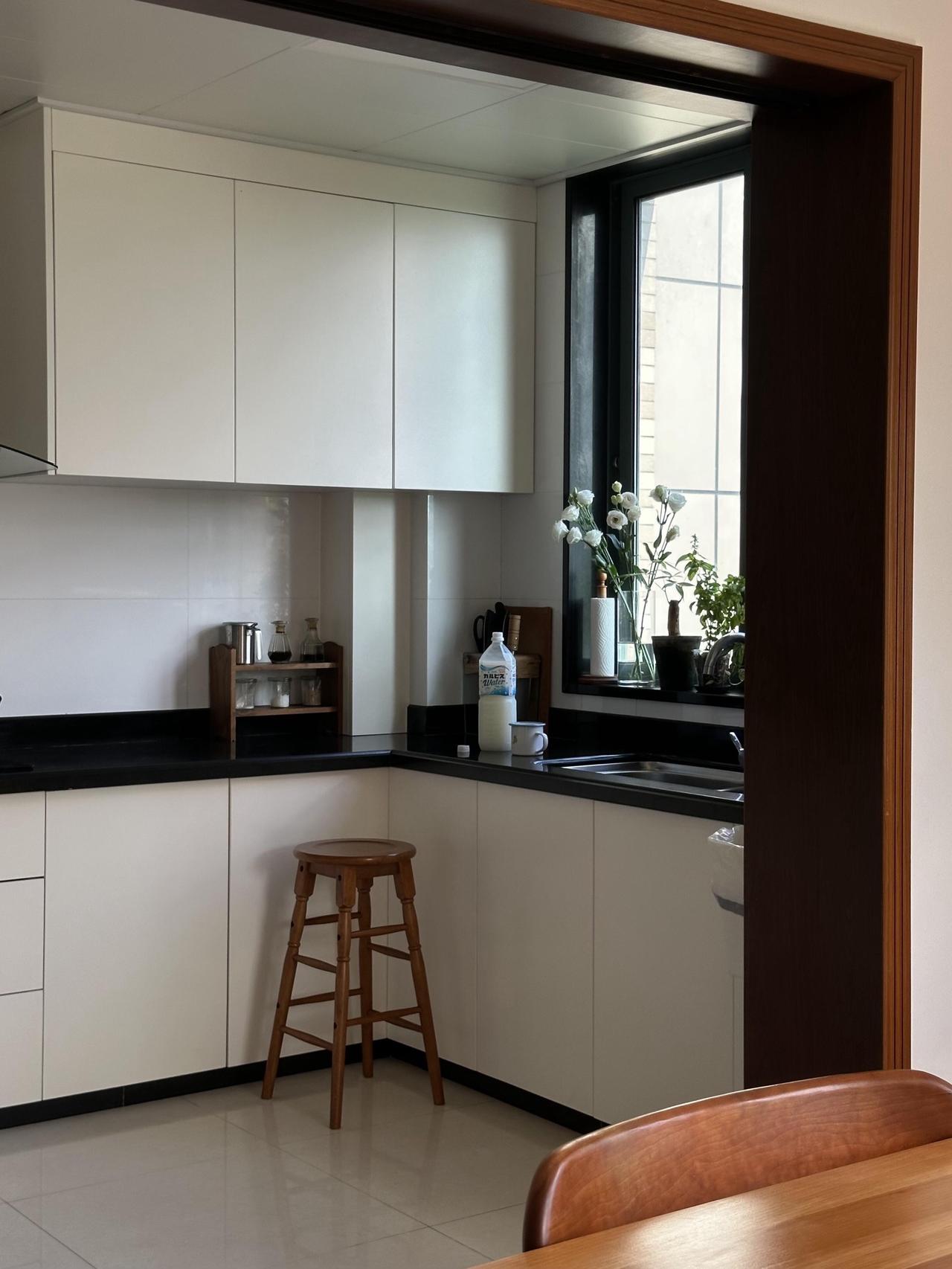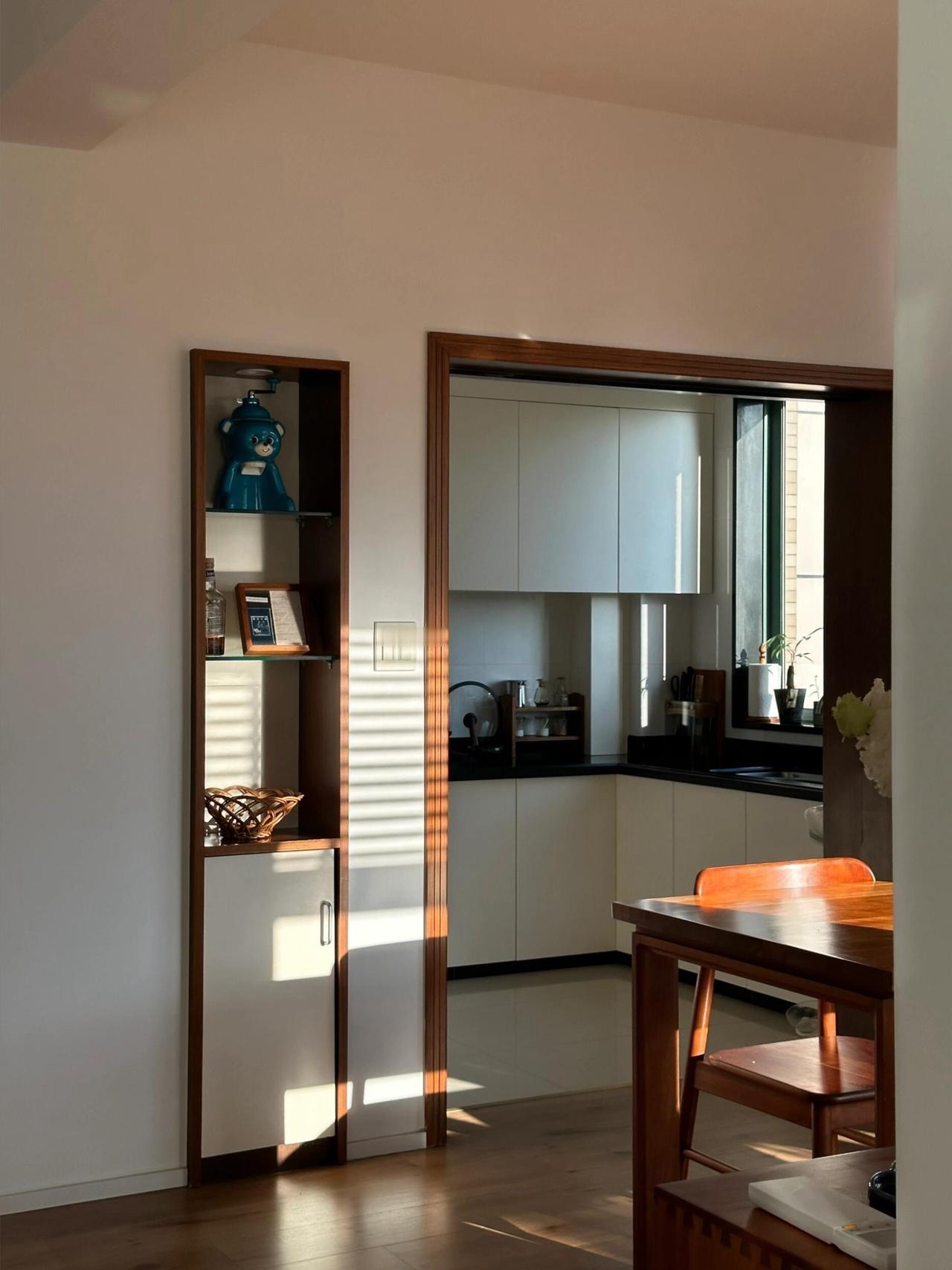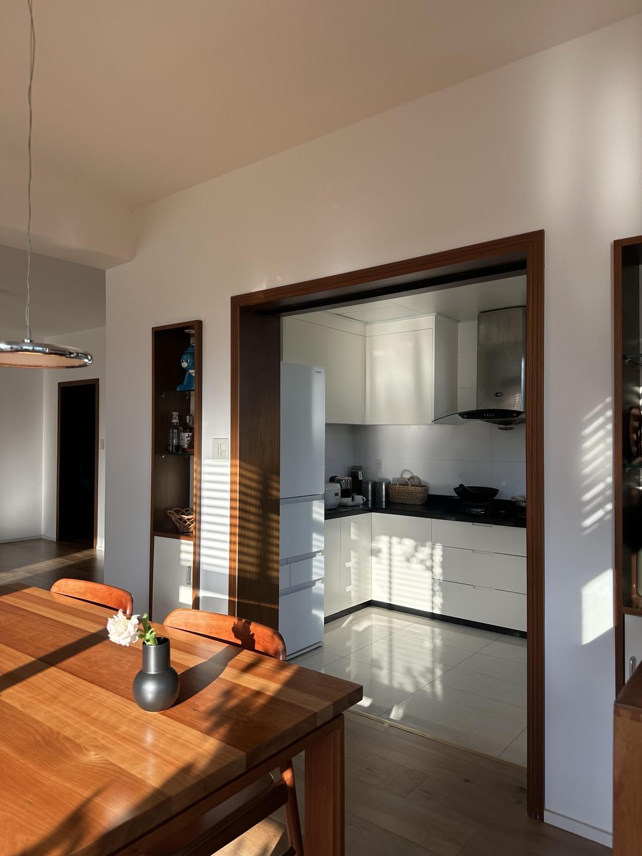 装修是她一手操办的,没请设计师,没画图纸,她列了一张单子:白墙,木地板,樱桃木的家具,白色家电,拆掉原来的吊顶,阳光一下子涌进来。