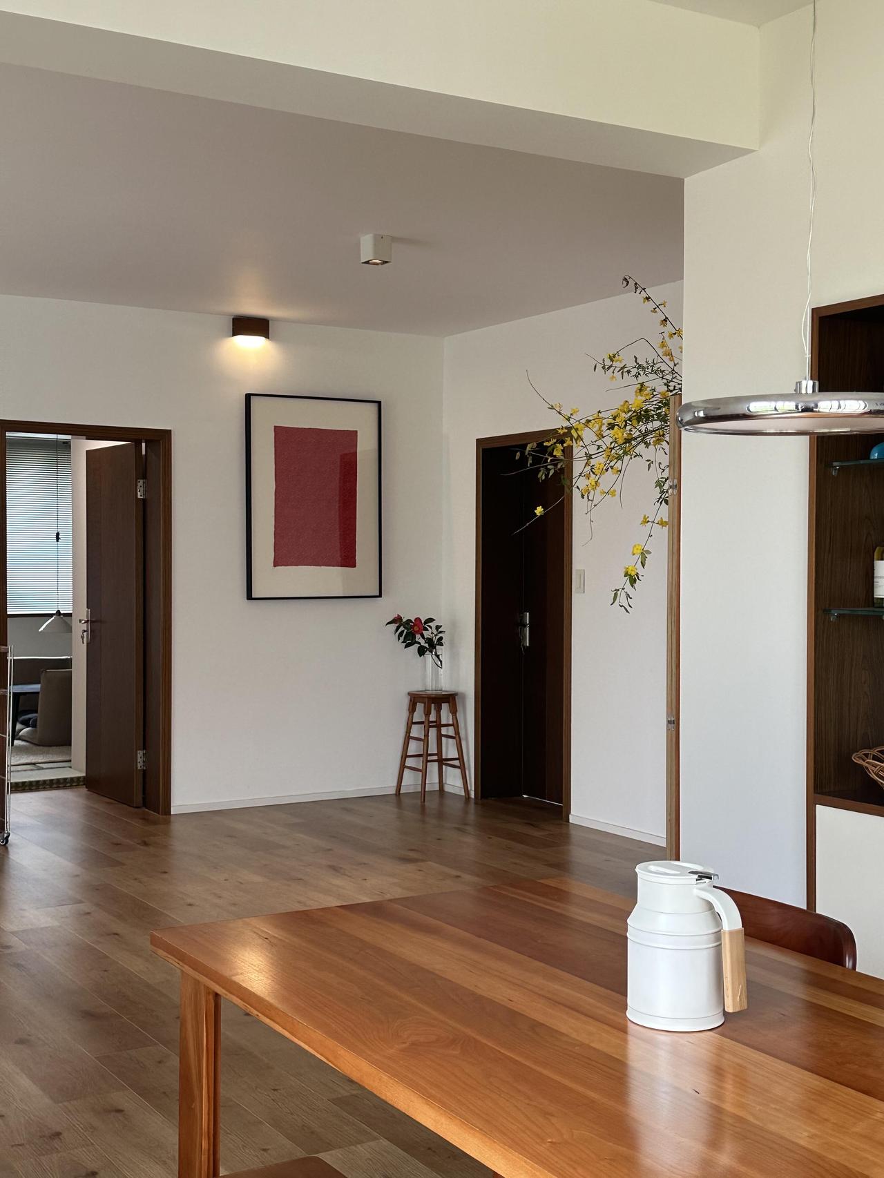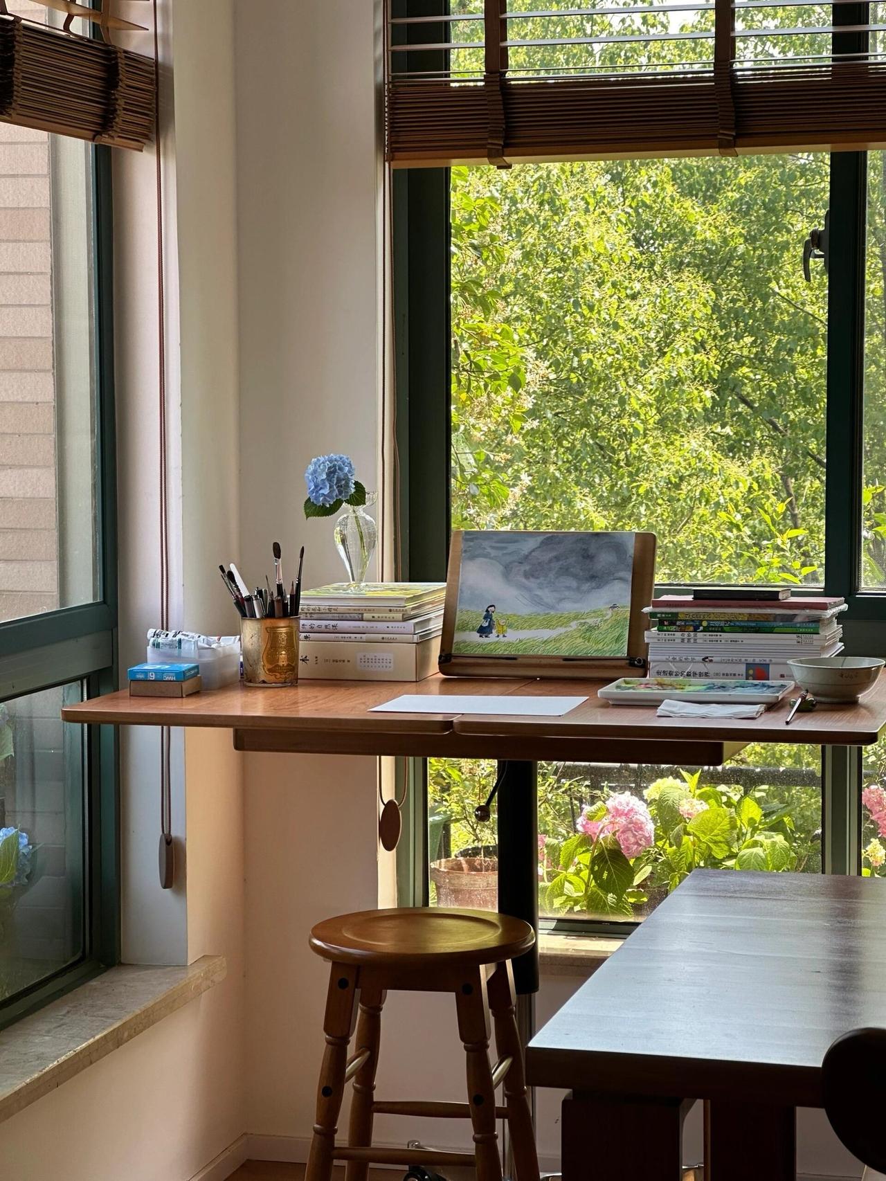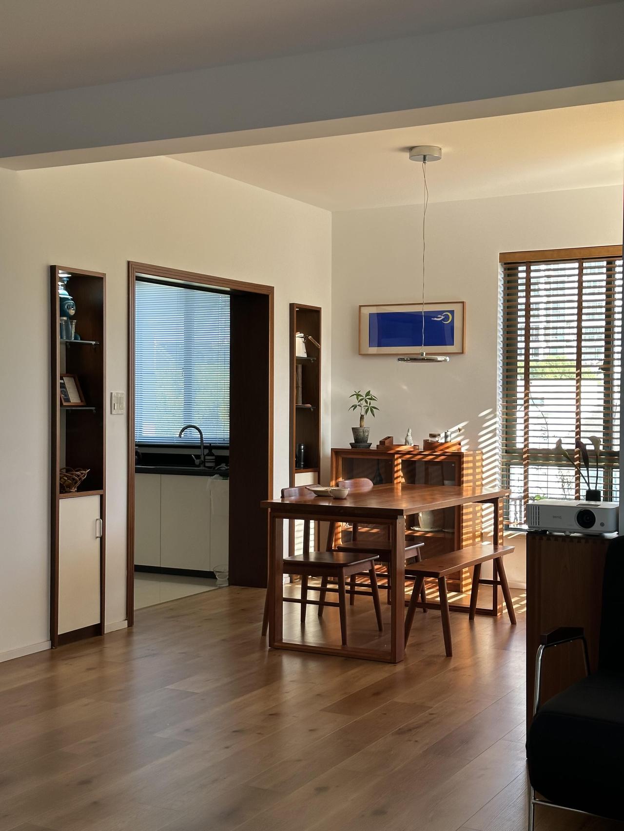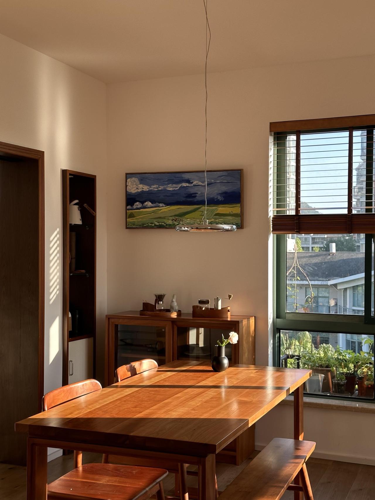 装修是她一手操办的,没请设计师,没画图纸,她列了一张单子:白墙,木地板,樱桃木的家具,白色家电,拆掉原来的吊顶,阳光一下子涌进来。