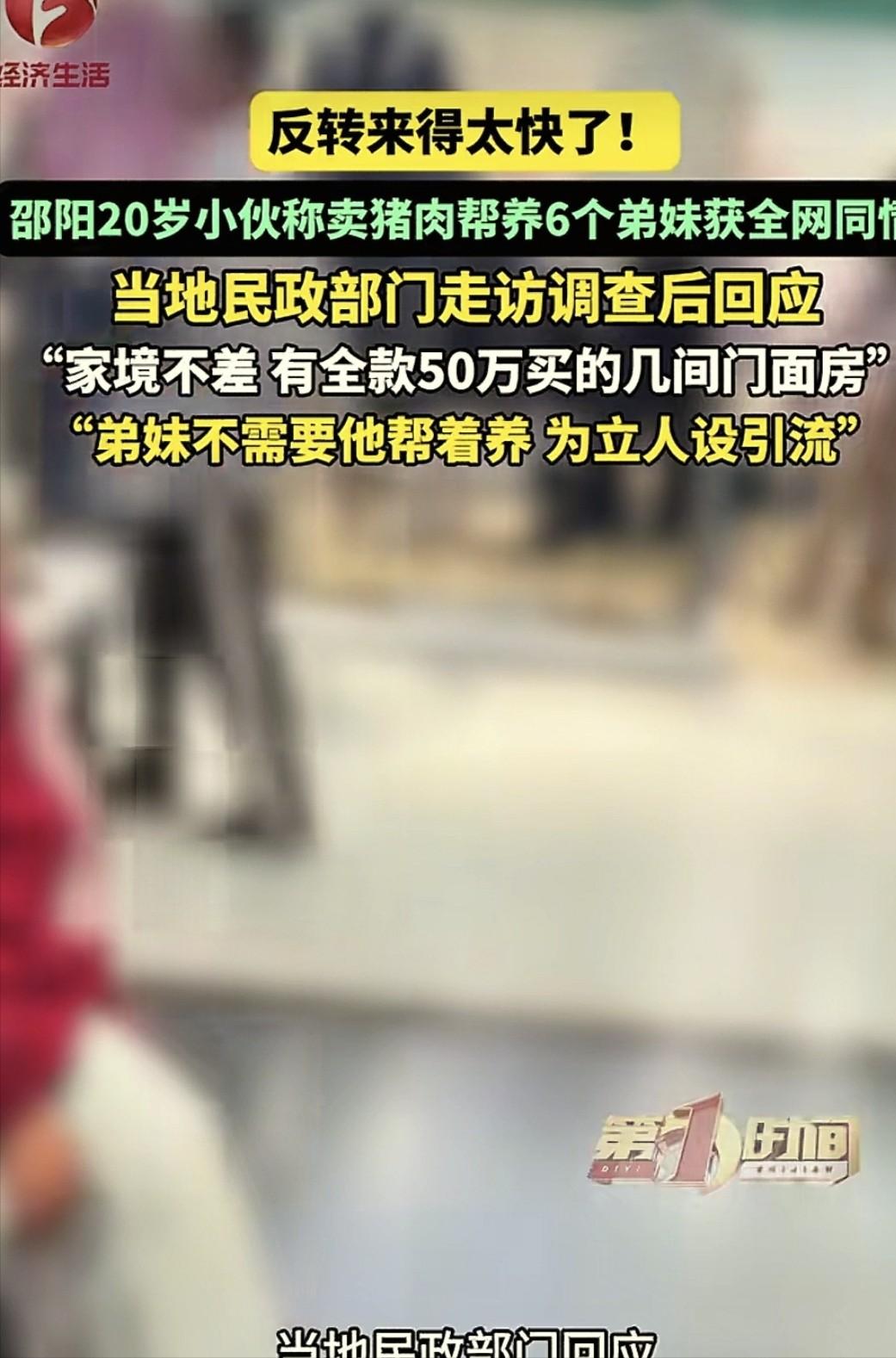 湖南邵阳,20岁小伙卖猪肉帮养6个弟妹引来无数人同情,当地走访后却发现事实并不是如此,小伙家境尚可,甚至已经超过当地一般水平,父亲全款50万盘下了几个店面,当有人询问是否需要帮扶时,父亲直言:我自己养的起,干嘛要你们帮忙?