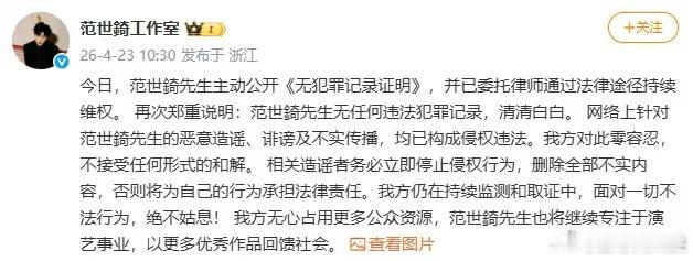 范世錡方公开无犯罪证明范世錡方公开无犯罪记录证明 谣言不攻自破,演员靠作品立足,范世錡的角色塑造一直很有特点,期待他更多新作品👏