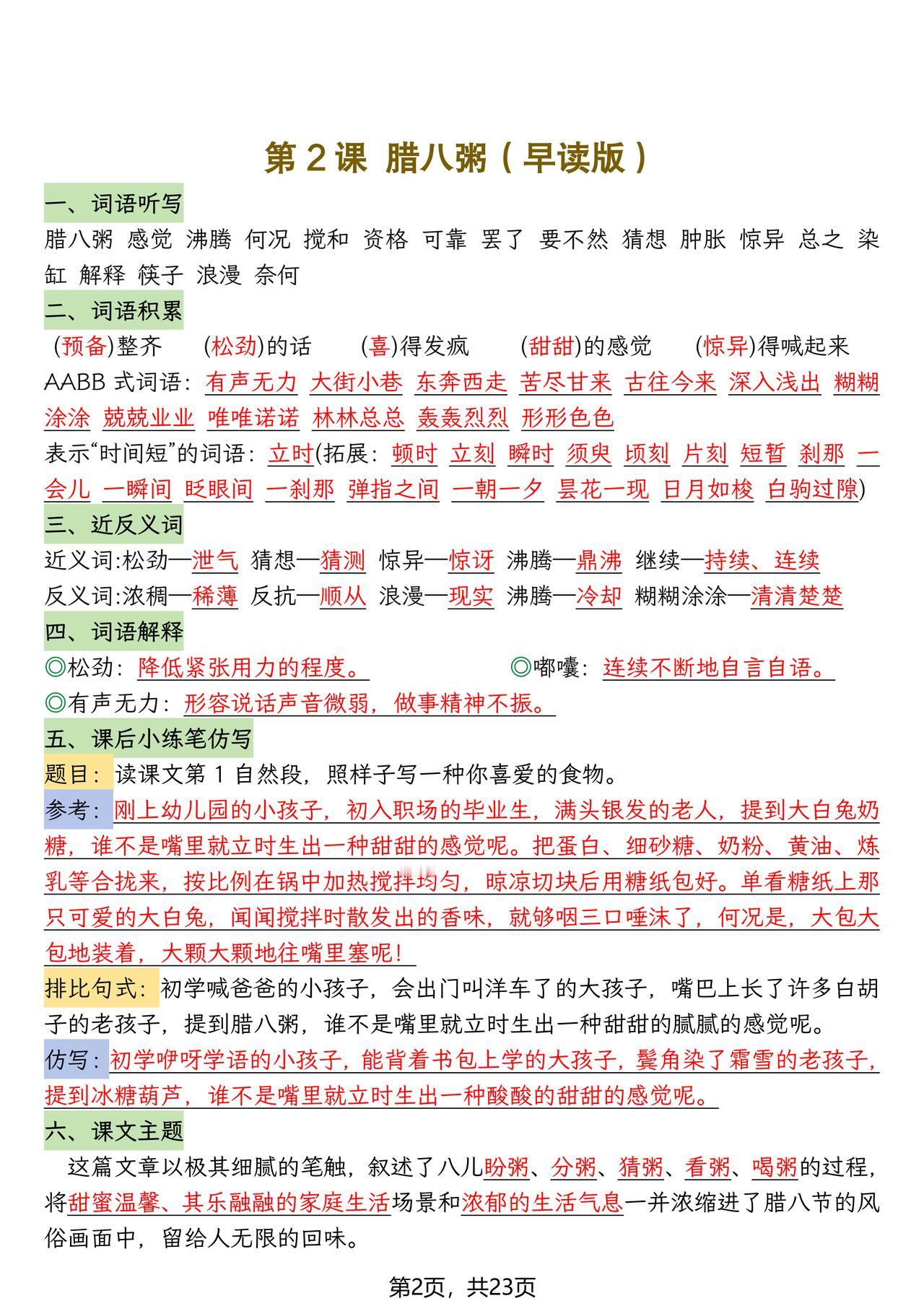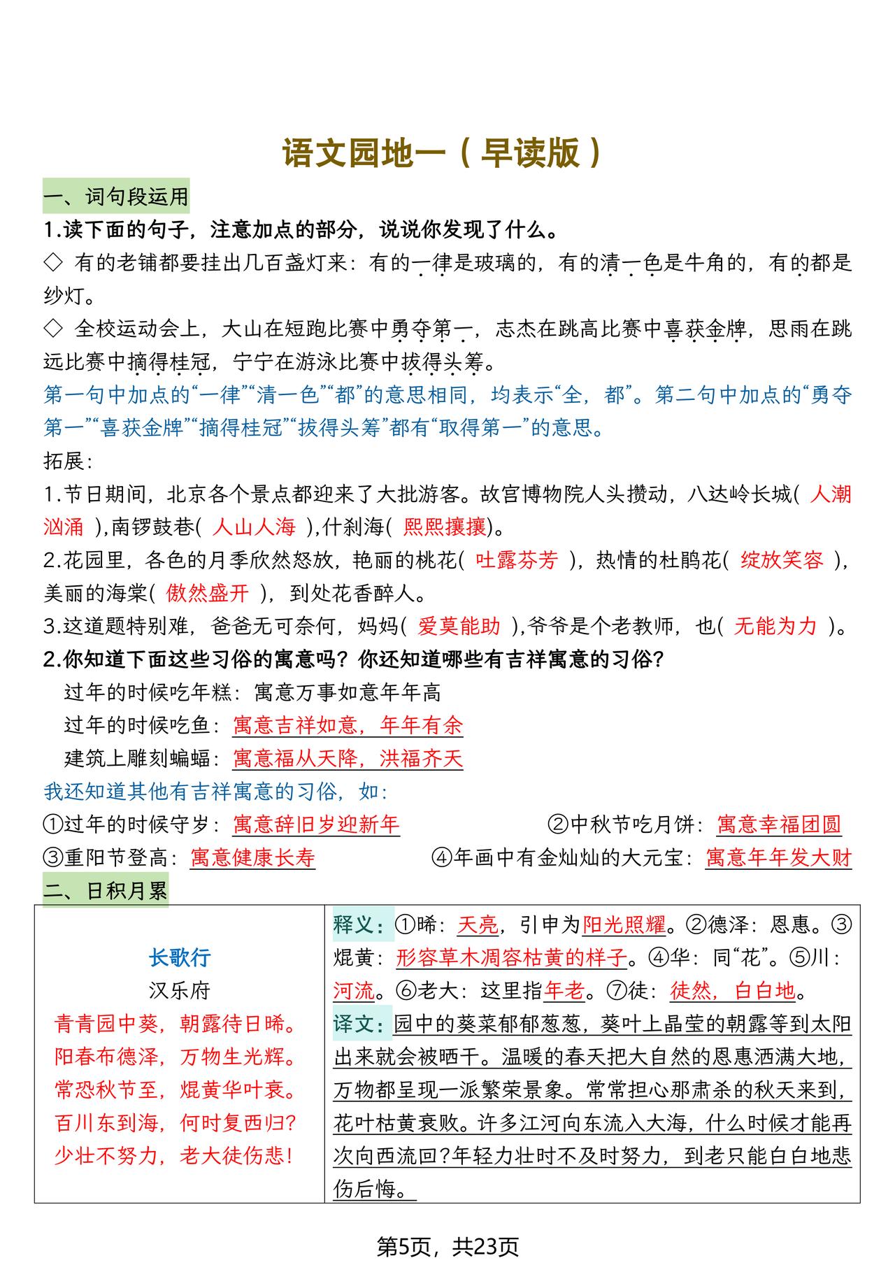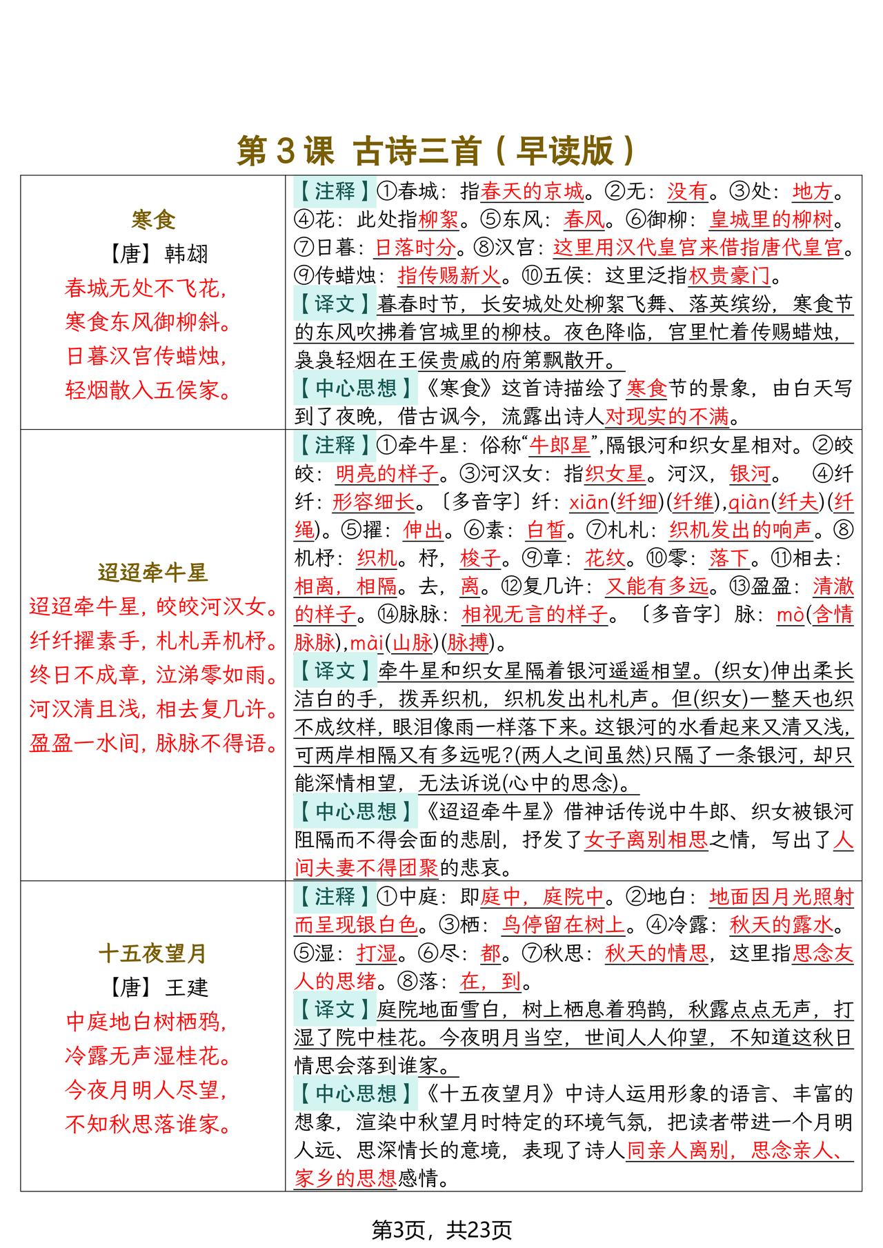 词语听写、近反义词、必背古诗、文言文译文、课文中心、日积月累、仿写句式,一课一重点,23 页全覆盖!
