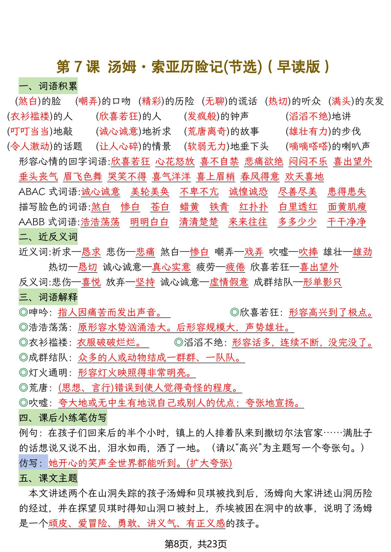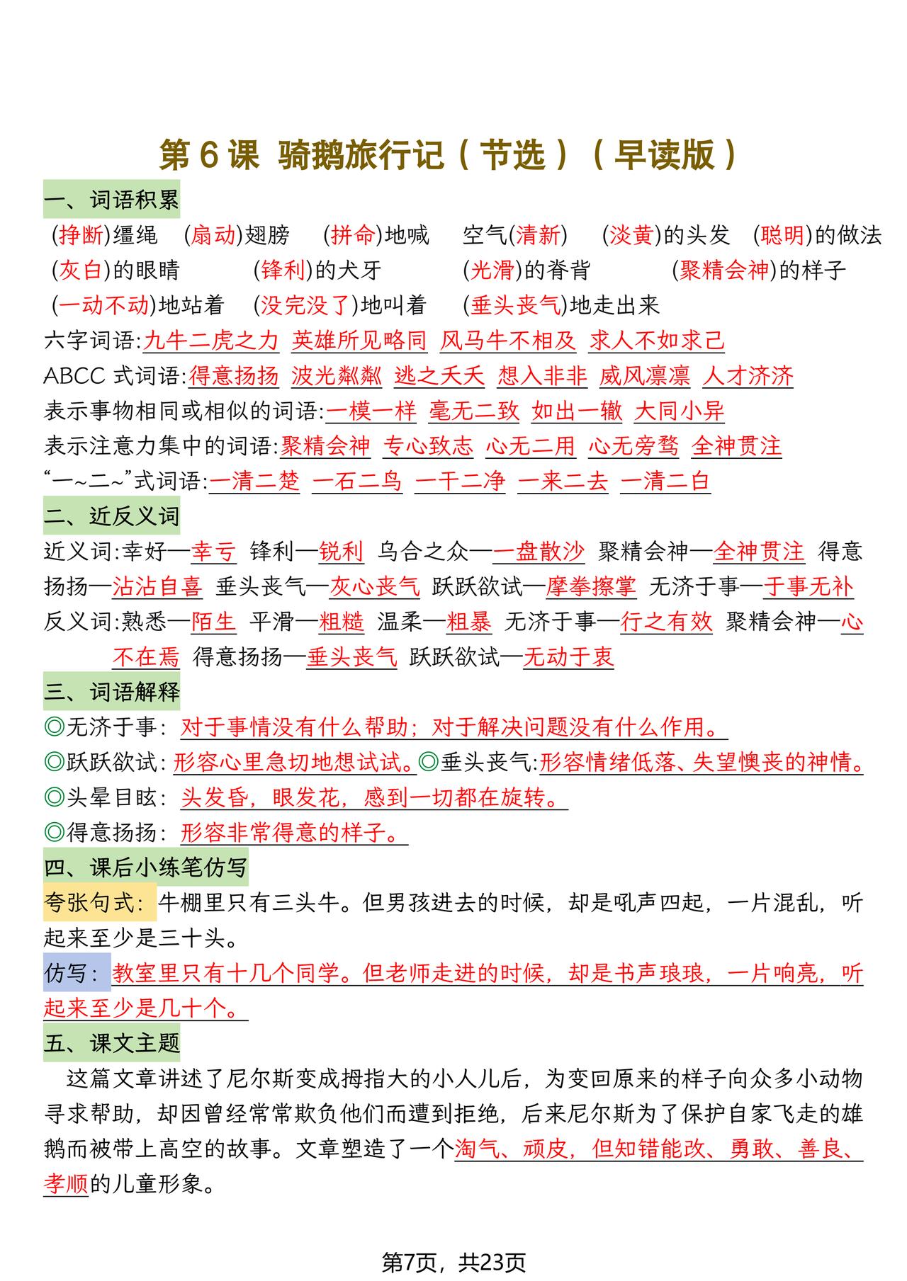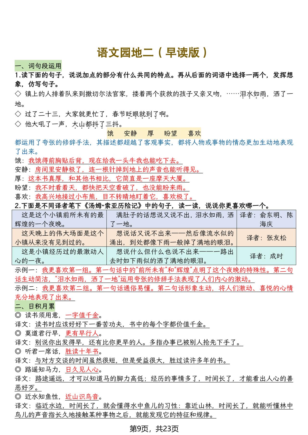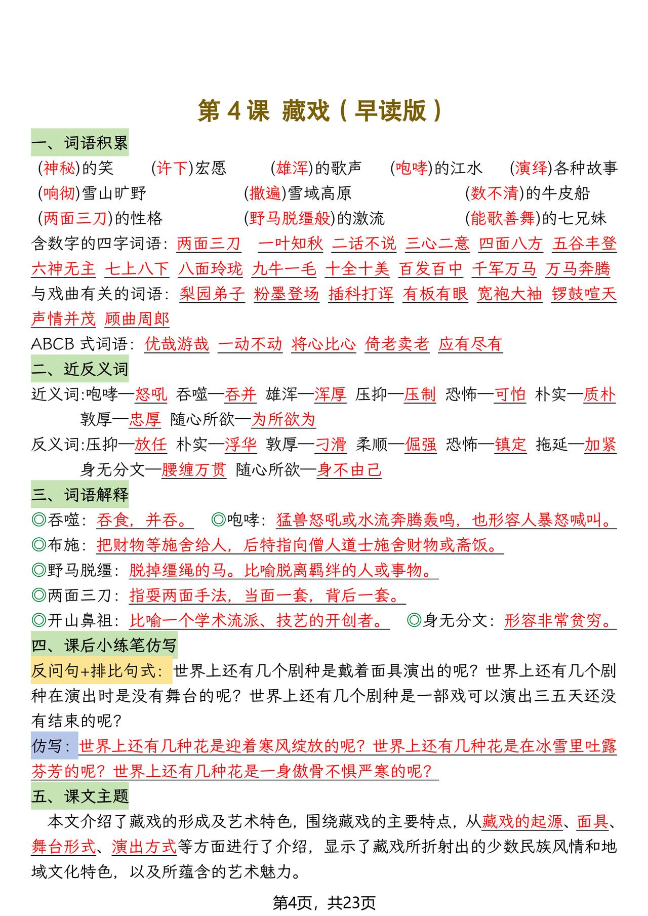 词语听写、近反义词、必背古诗、文言文译文、课文中心、日积月累、仿写句式,一课一重点,23 页全覆盖!