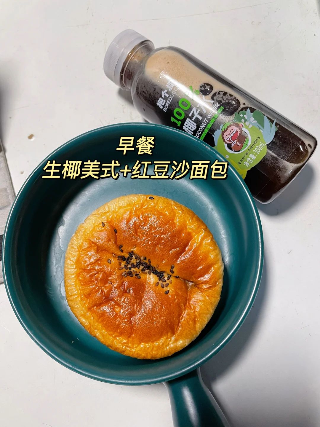 ✅ 早餐:生椰美式+红豆沙面包(7点)