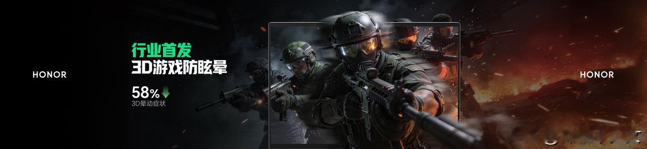 荣耀WIN游戏本搭载行业领先的3D游戏防眩晕技术,可减少58%的3D晕动症状;搭载多网融合加速技术,实现至高三网加速,大幅缩短游戏下载等待时间。