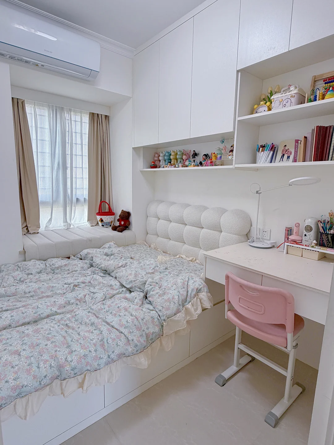 ✔️沙发选了奶白色,坐深够宽,还能当床睡,小户型刚需款。