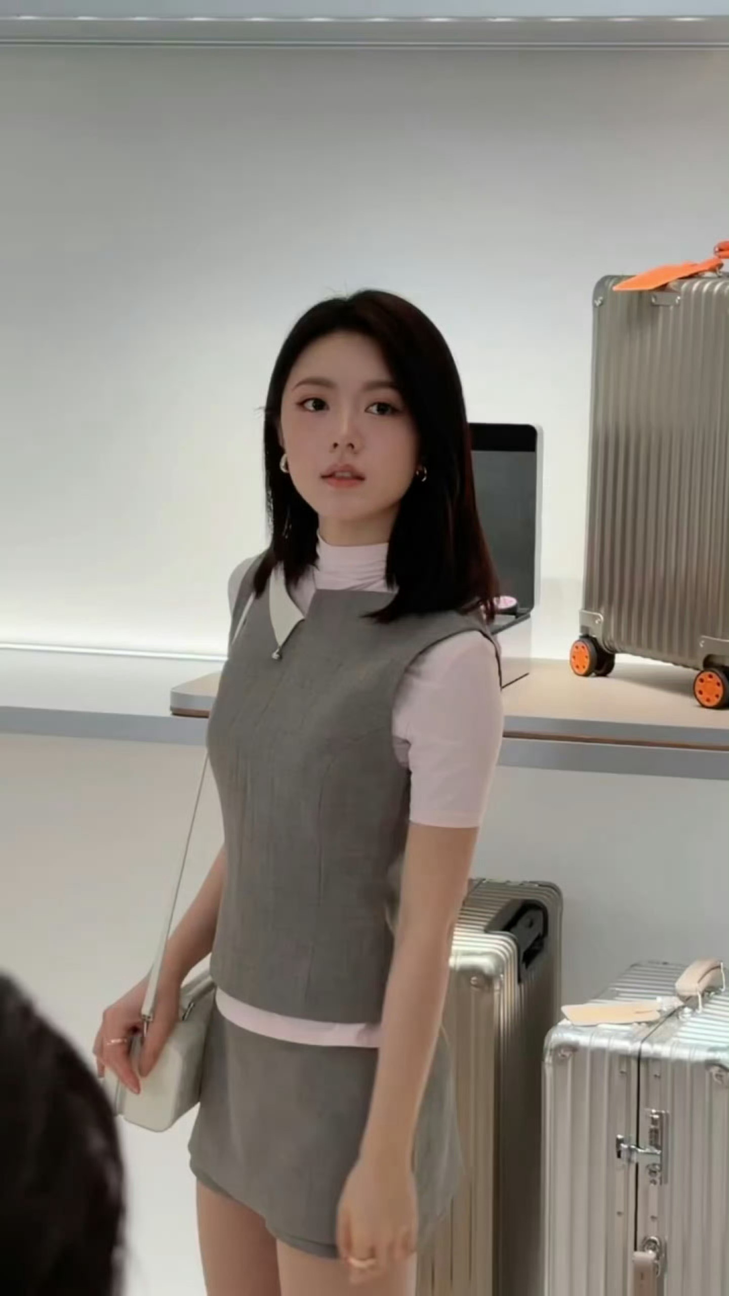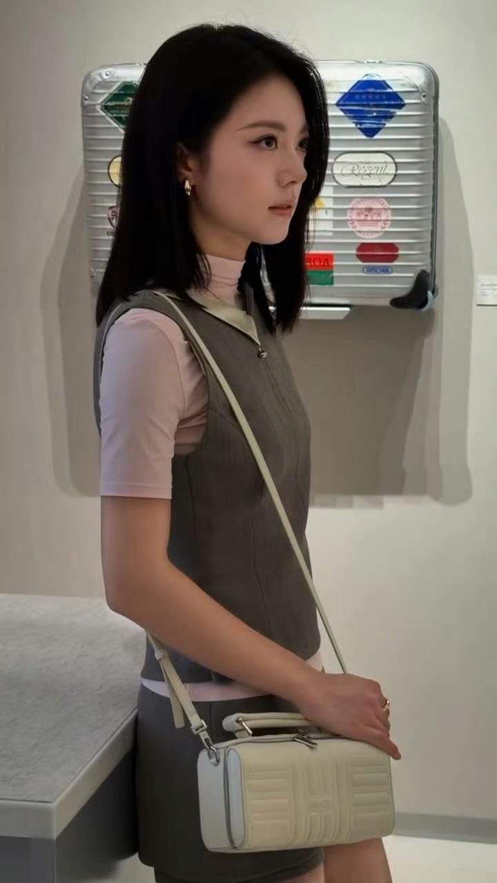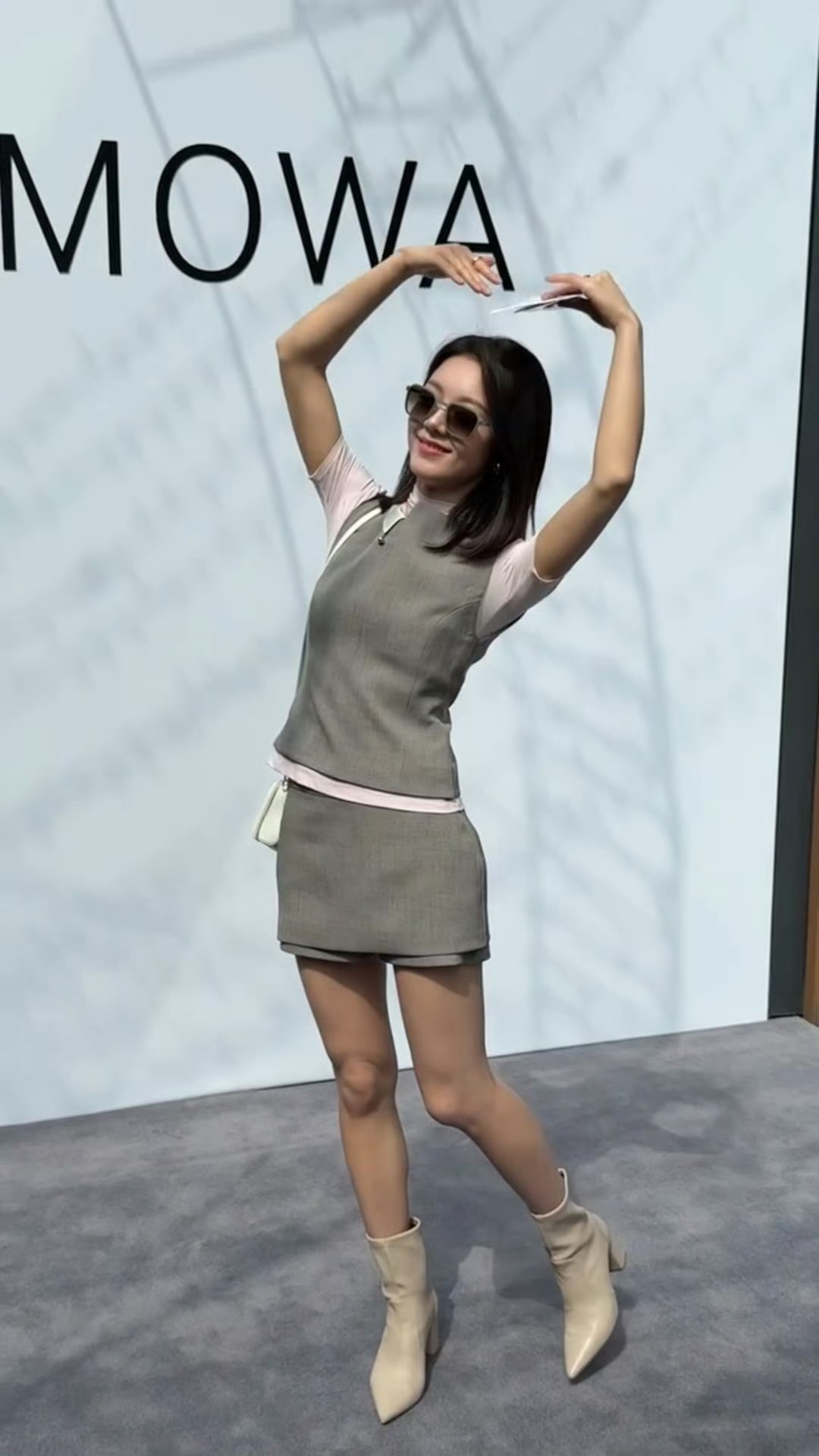职场女强人内味儿有了赵今麦灰粉裙裤套装造型